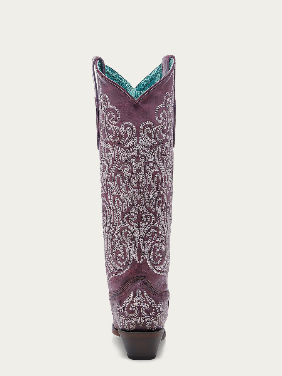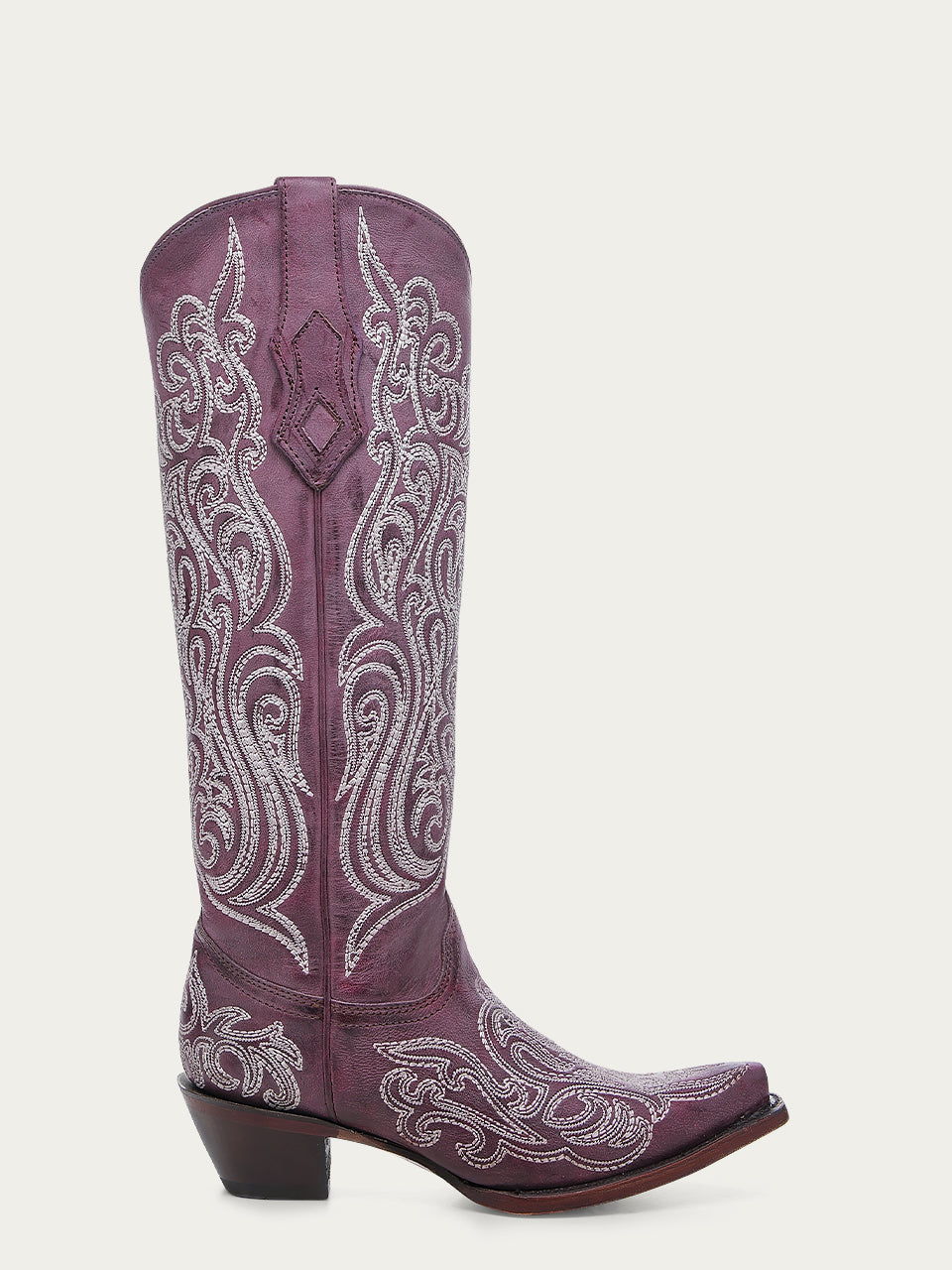 WOMENS BLUE AND YELLOW EMBROIDERY LUMINESCENT DARK PINK TALL TOP SNIP TOE COWBOY BOOT-A4698 WOMENS BLUE AND YELLOW EMBROIDERY LUMINESCENT DARK PINK TALL TOP SNIP TOE COWBOY BOOT-A4698