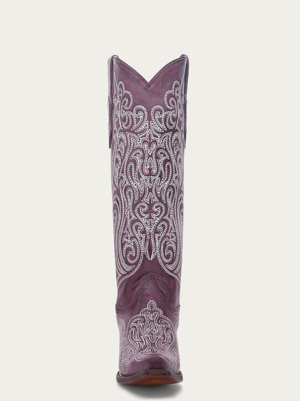 A4698 - WOMEN'S BLUE AND YELLOW EMBROIDERY LUMINESCENT DARK PINK TALL TOP SNIP TOE COWBOY BOOT