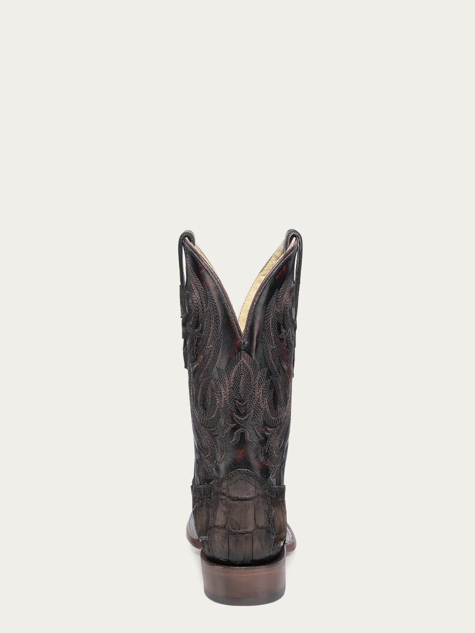 A4935 - MEN'S CHOCOLATE ALLIGATOR EMBROIDERY AND WOVEN SHAFT WIDE SQUARE TOE LEATHER SOLE WITH RUBBER INSERT COWBOY BOOT