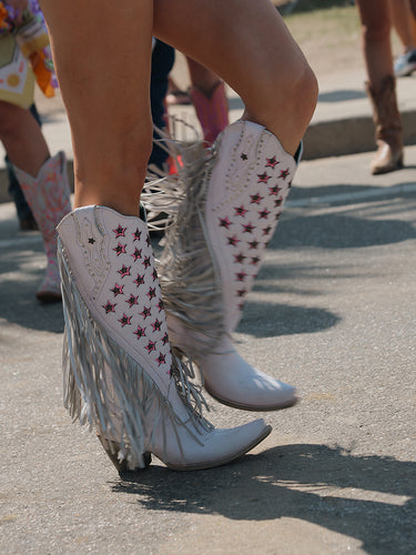 A3322 - WOMEN'S WHITE GLITTERED INLAY AND CRYSTALS SNIP TOE WEDDING COWBOY BOOT$288.00 /77 reviews