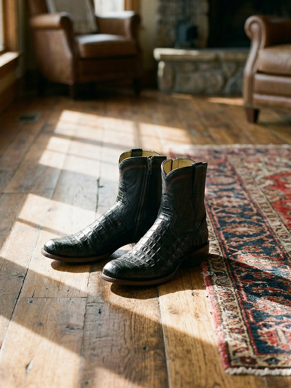 Boots with scales require a different kind of care. Always wipe with the grain, never against it. From time to time, you may want to use a reptile spray foam cleaner and conditioner on your boots, to lift dirt or debris from the scales, wiping away any remaining residue with a soft cloth.