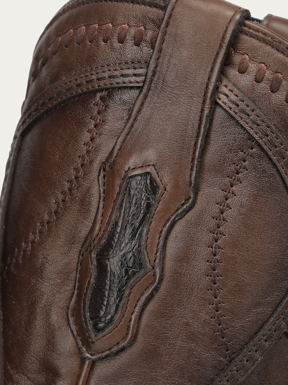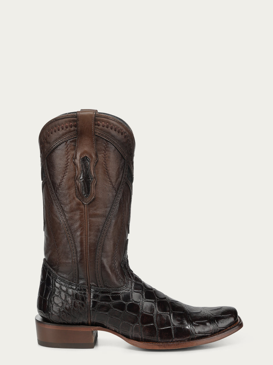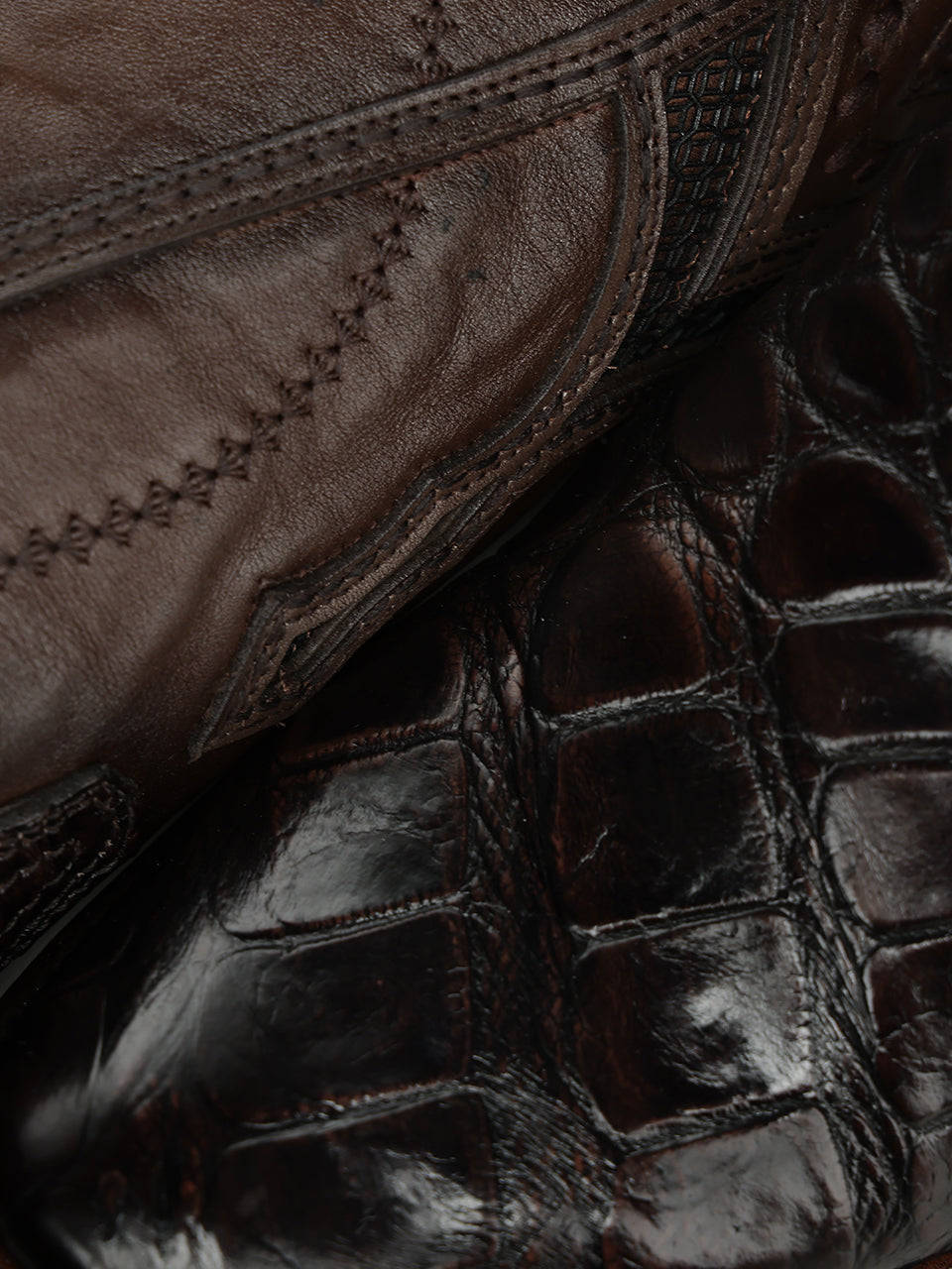 A5106 - MEN'S EMBROIDERY WOVEN AND INLAY BROWN ALLIGATOR NARROW SQUARE TOE COWBOY BOOT