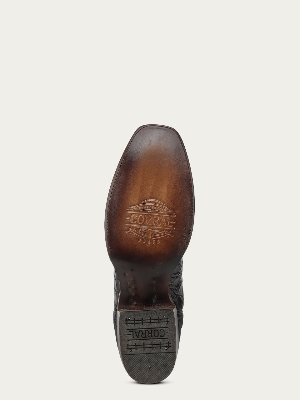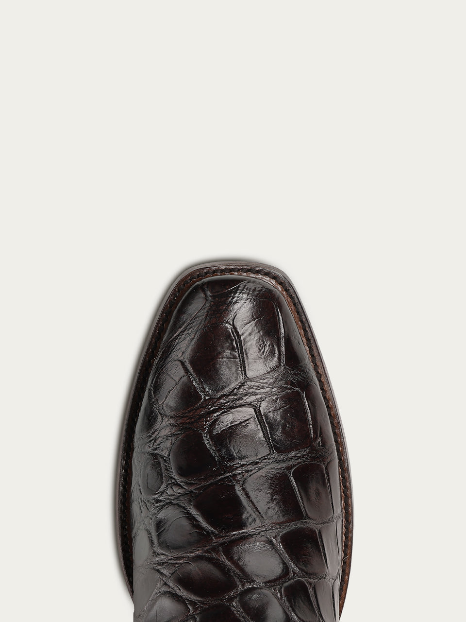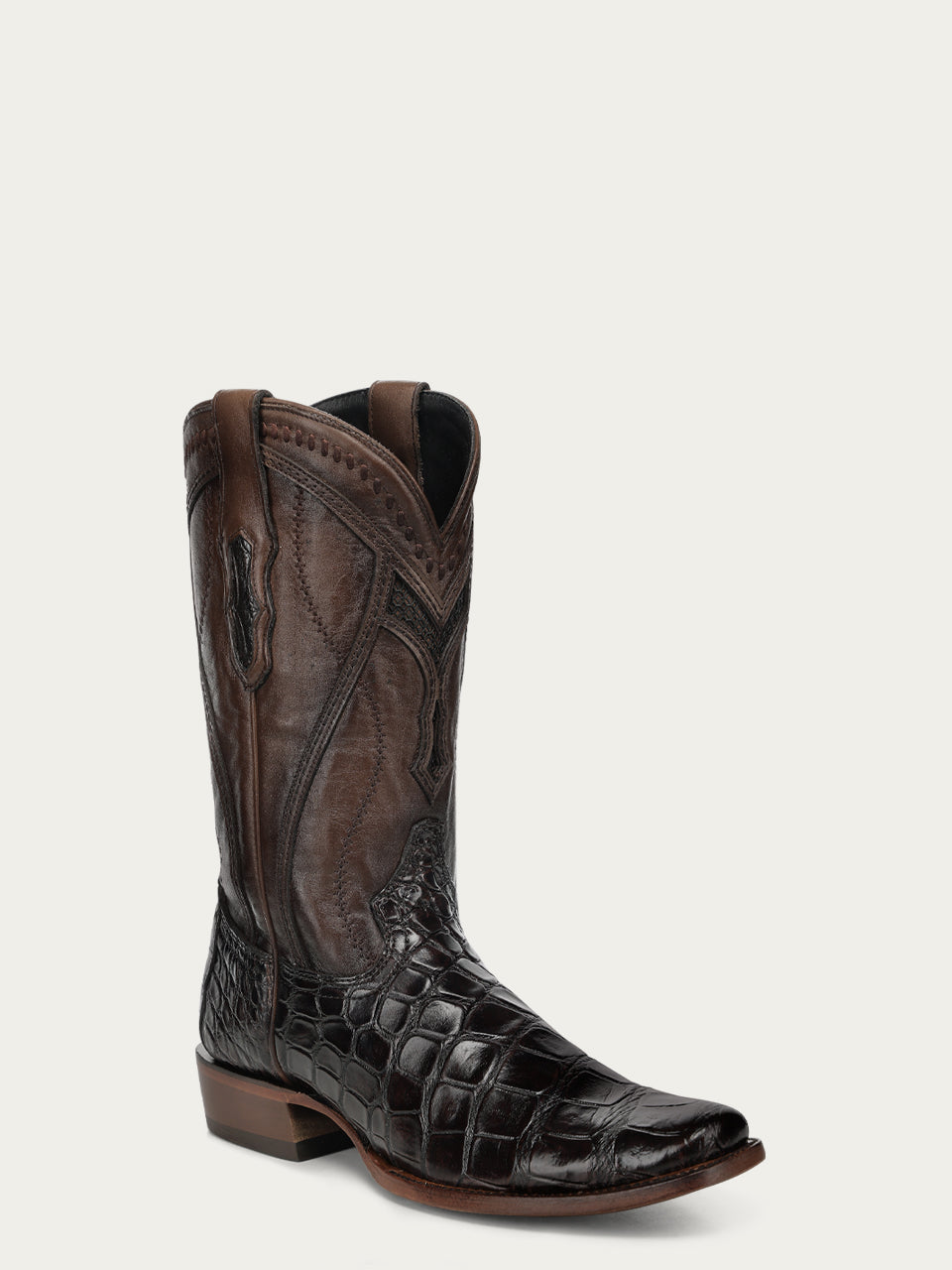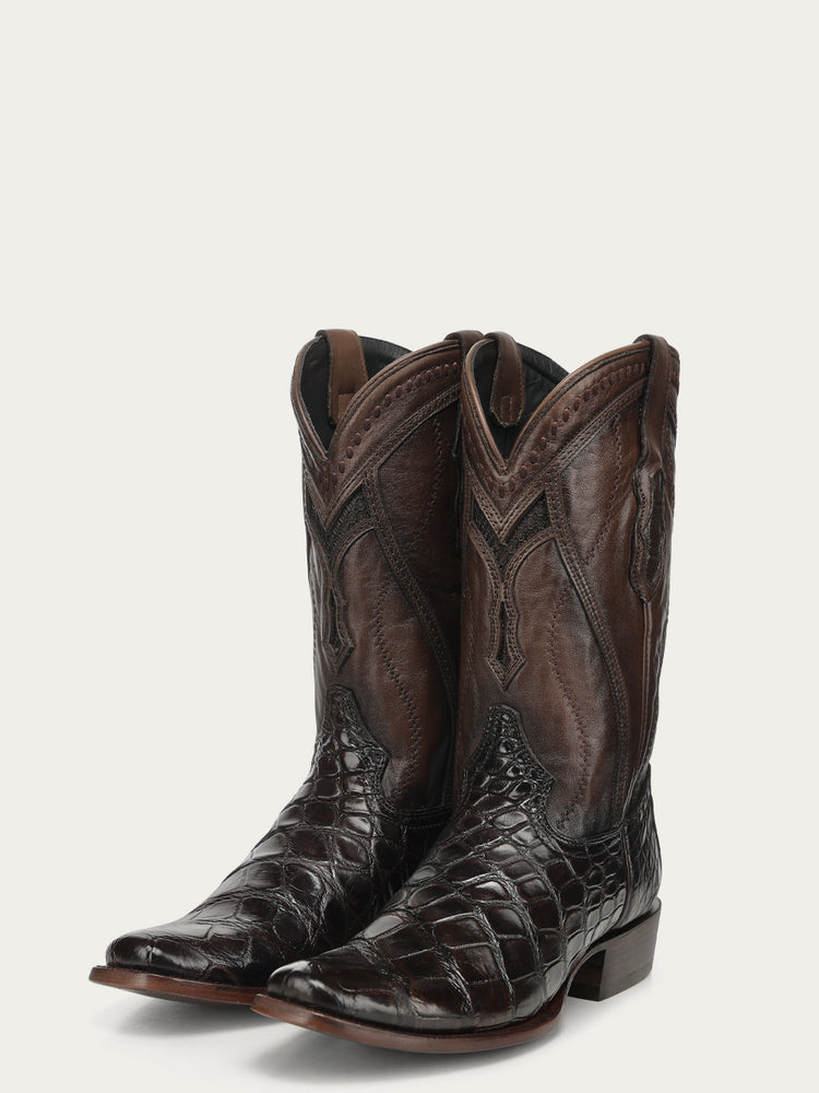 A5106 - MEN'S EMBROIDERY WOVEN AND INLAY BROWN ALLIGATOR NARROW SQUARE TOE COWBOY BOOT