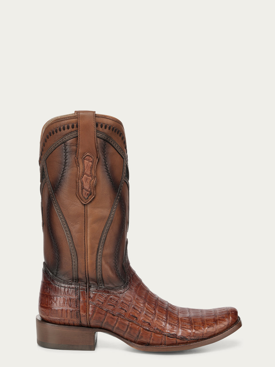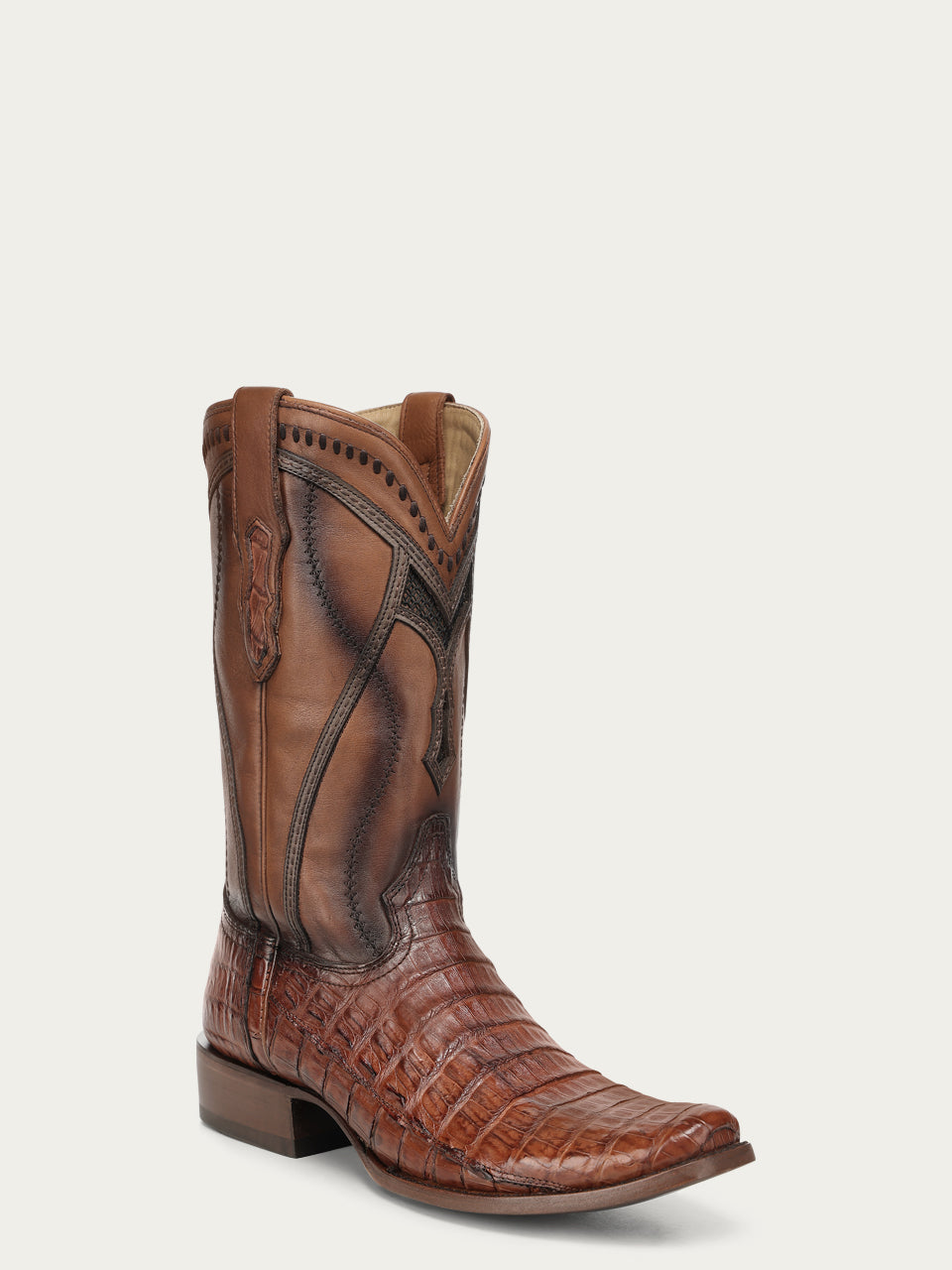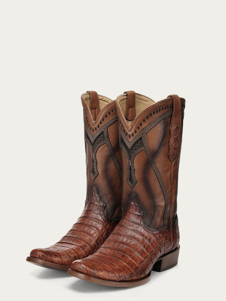A5109 - MEN'S EMBROIDERY WOVEN AND INLAY HONEY CAIMAN NARROW SQUARE TOE COWBOY BOOT