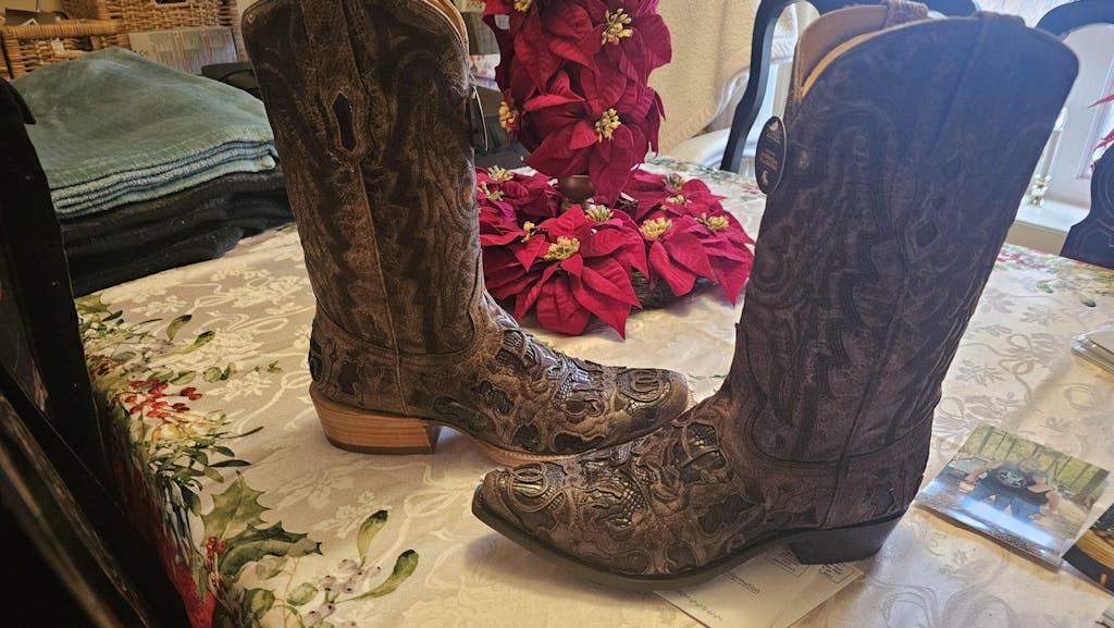 If at all possible, try not to wear exotic skin boots in extremely wet weather conditions, stand or walk in water, or mud. Keep your boots free of dust, dirt, and debris. Apply a light boot conditioner each week when being worn often. If you store your boots for an extended period, it is recommended that you condition them about 3-4 times a year at least.