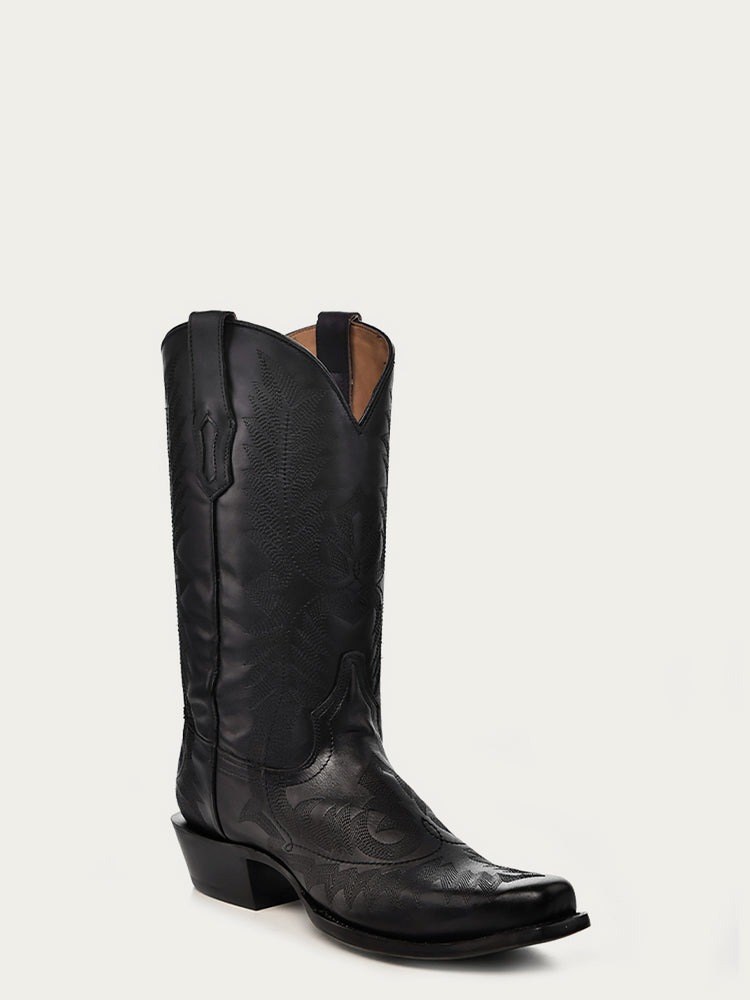 A4545 - MEN'S EMBROIDERY BLACK NARROW SQUARE TOE COWBOY BOOT