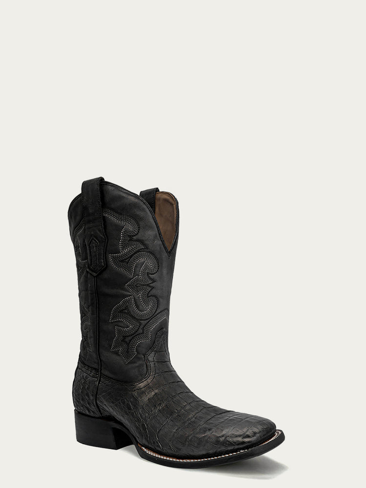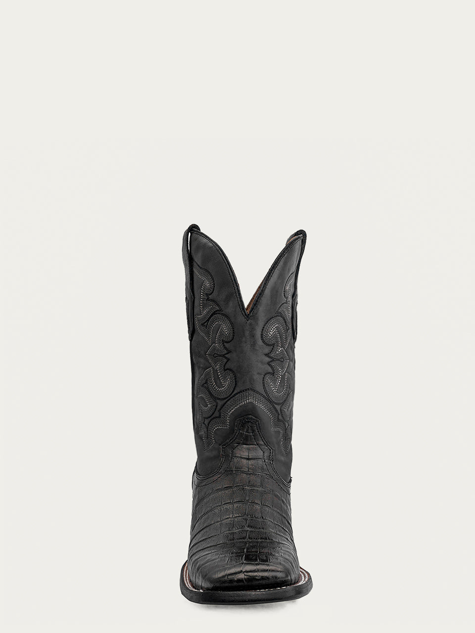 A4496 - MEN'S EMBROIDERY HONEY BROWN CAIMAN NARROW SQUARE TOE LEATHER SOLE WITH RUBBER INSERT COWBOY BOOT