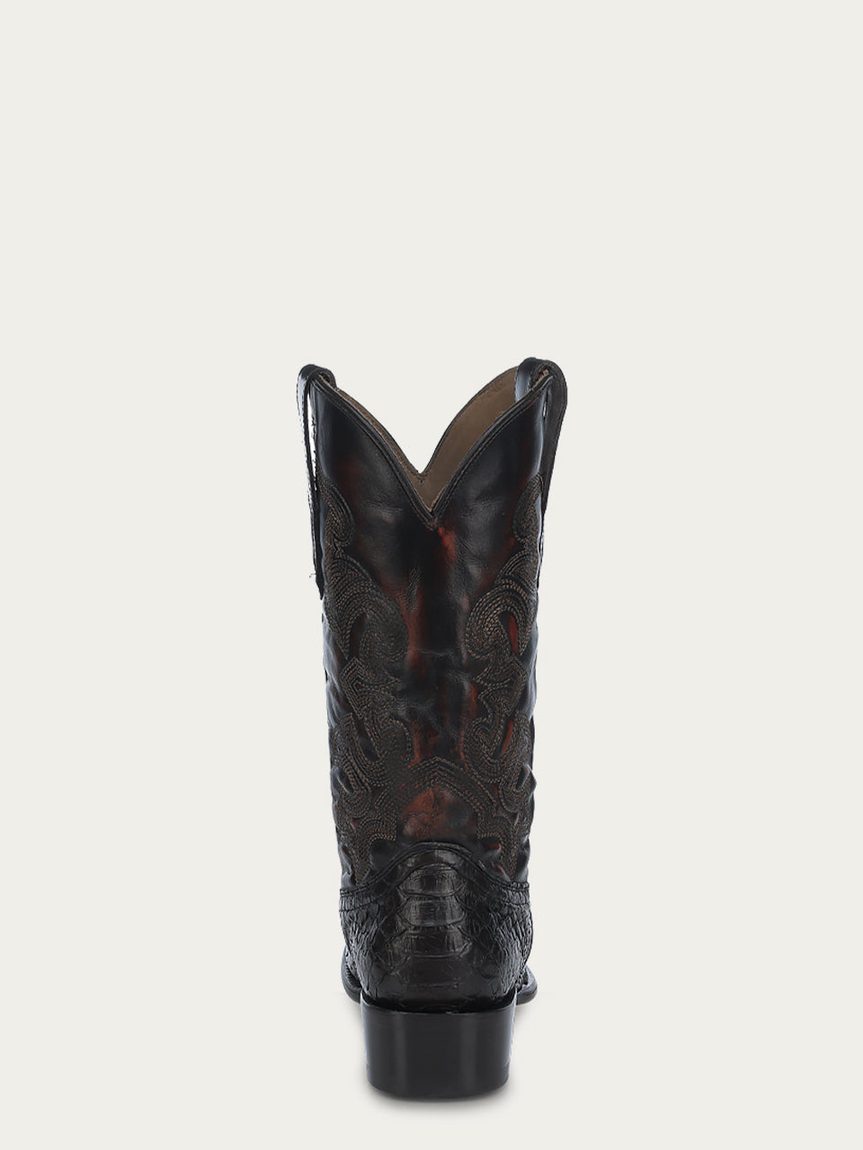 A4647 - MEN'S EMBROIDERY HONEY COWHIDE SHAFT BLACK PYTHON NARROW SQUARE TOE COWBOY BOOT