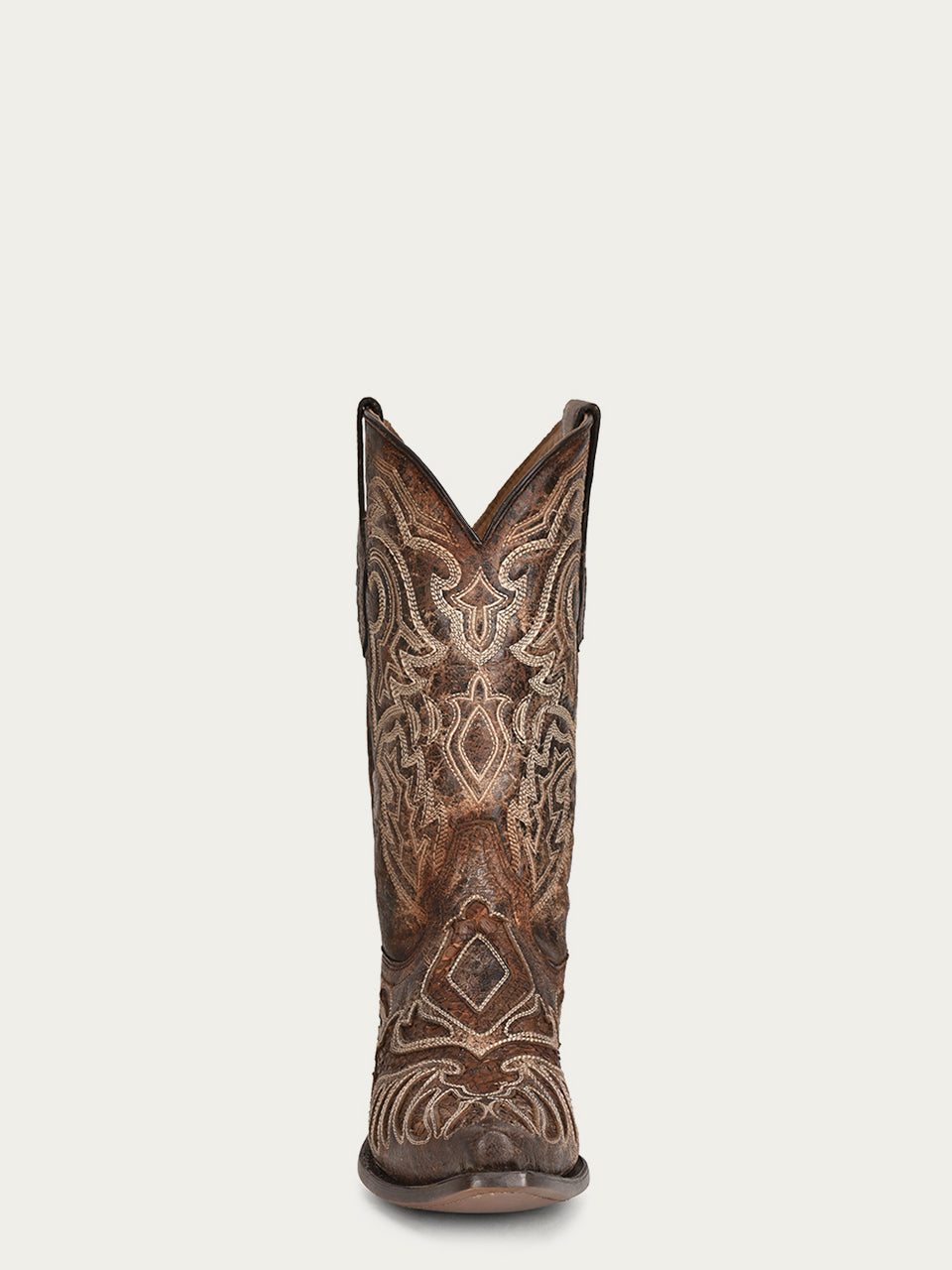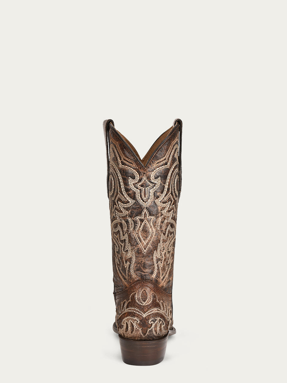 A4352 - MEN'S EMBROIDERY INLAY BROWN SNIP TOE COWBOY BOOT