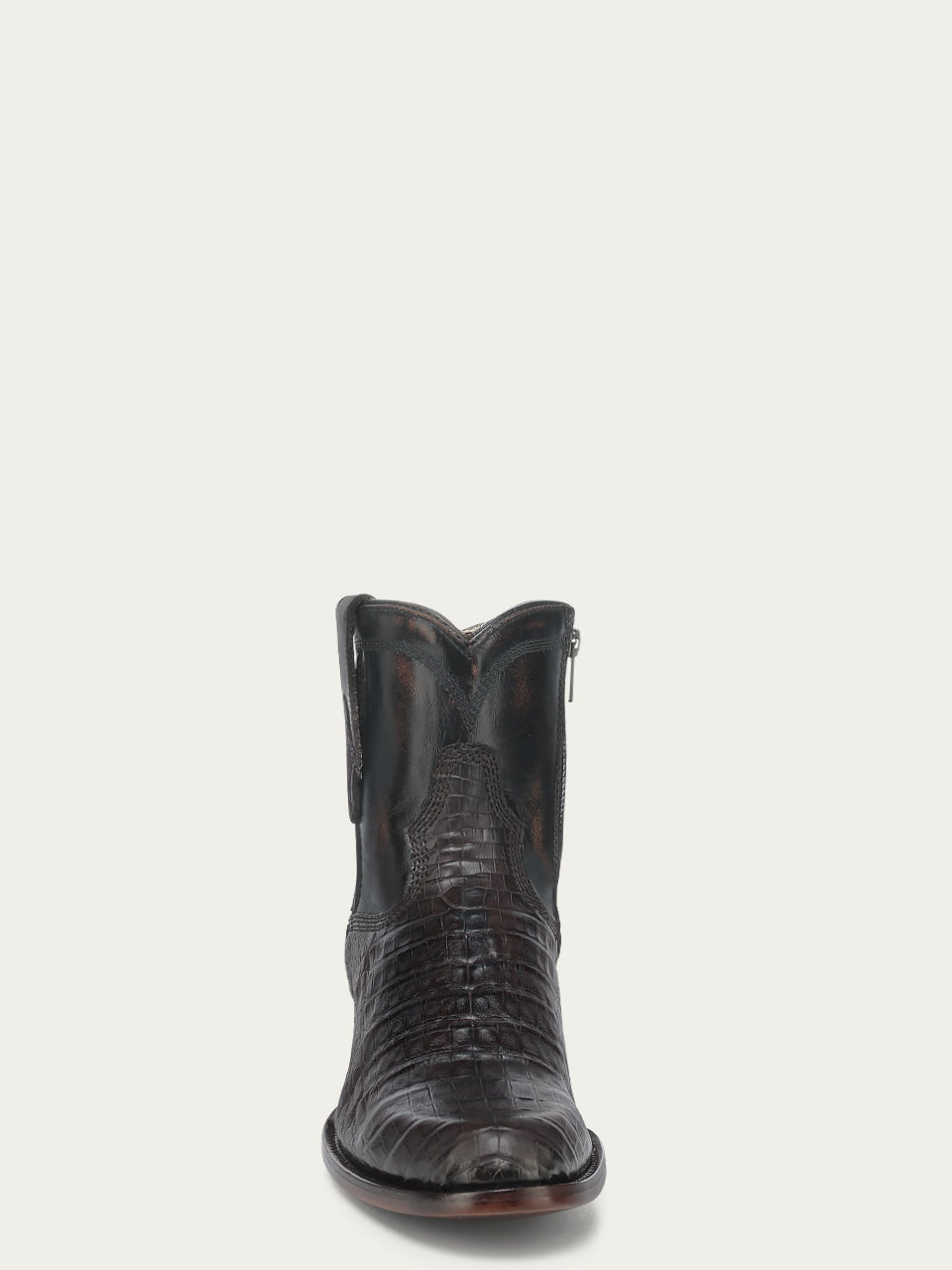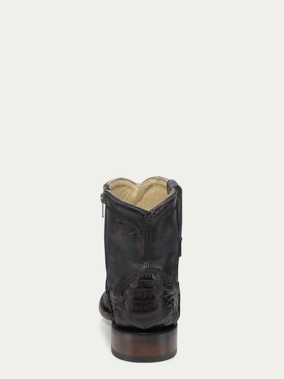 A4962 - MEN'S CAIMAN EMBROIDERY BROWN ROUND TOE ANKLE COWBOY BOOT