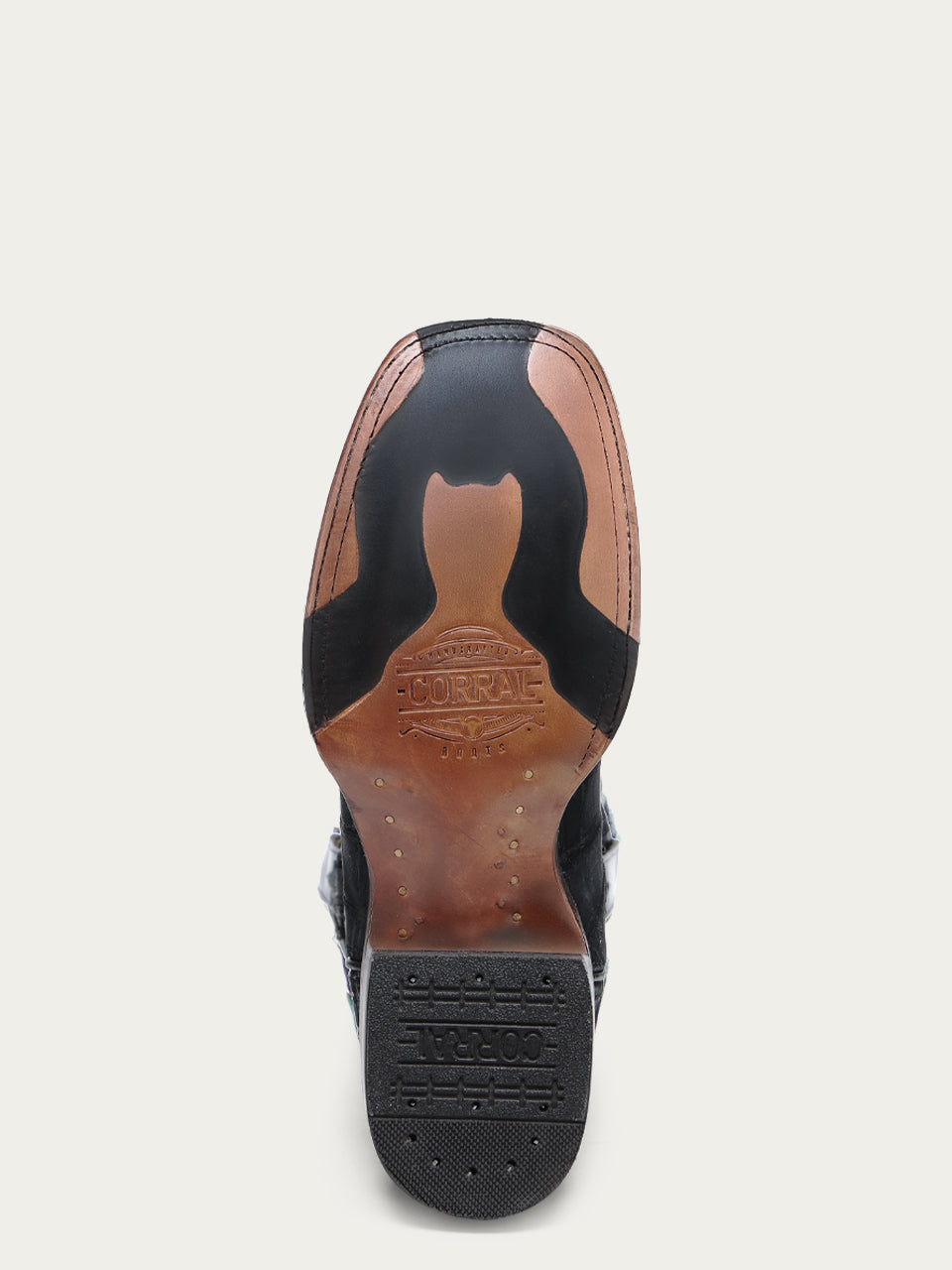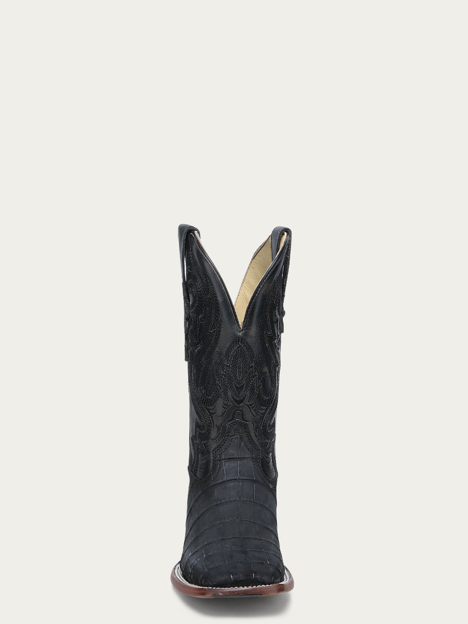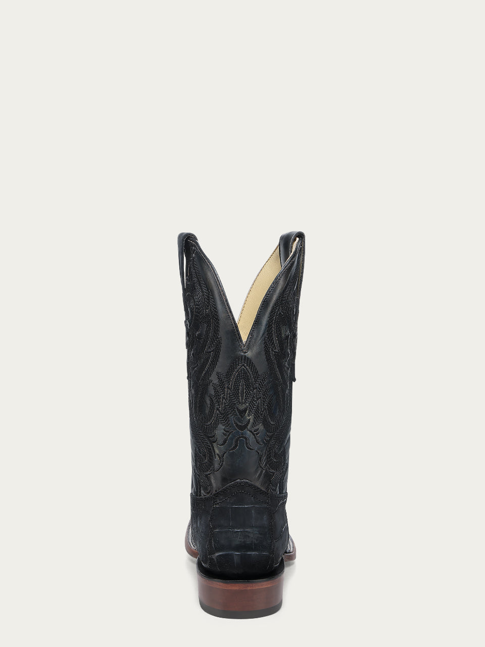 A4933 - MEN'S EMBROIDERY NAVY BLUE ALLIGATOR WIDE SQUARE TOE COWBOY BOOT WITH LEATHER SOLE AND RUBBER INSERT