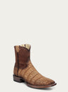 A4916 - MEN'S EMBROIDERY COGNAC ALLIGATOR SHORT WIDE SQUARE TOE COWBOY BOOT WITH RUBBER INSERT