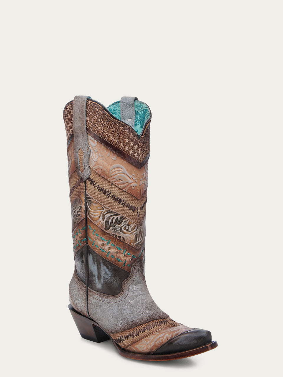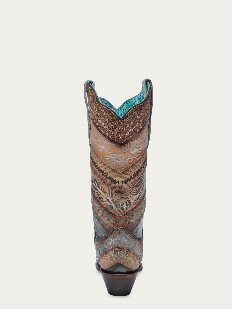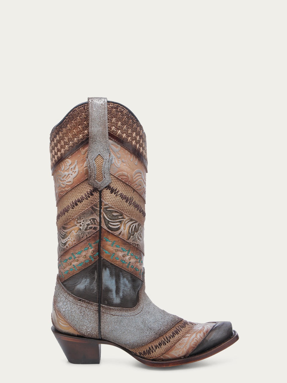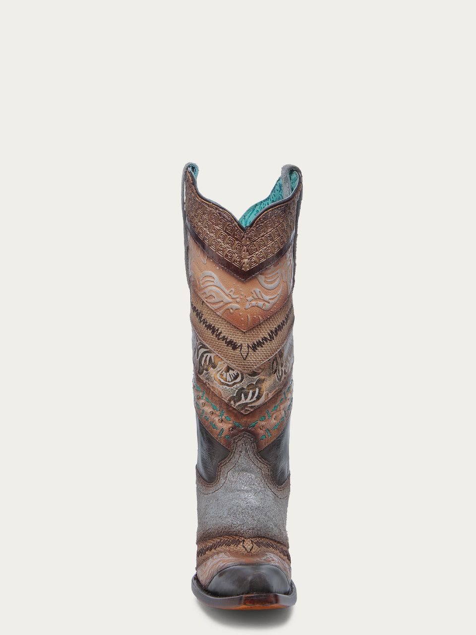 A4741 - WOMEN'S APPLICATION JUTE EMBROIDERY AND STUDS SNIP TOE COWBOY BOOT