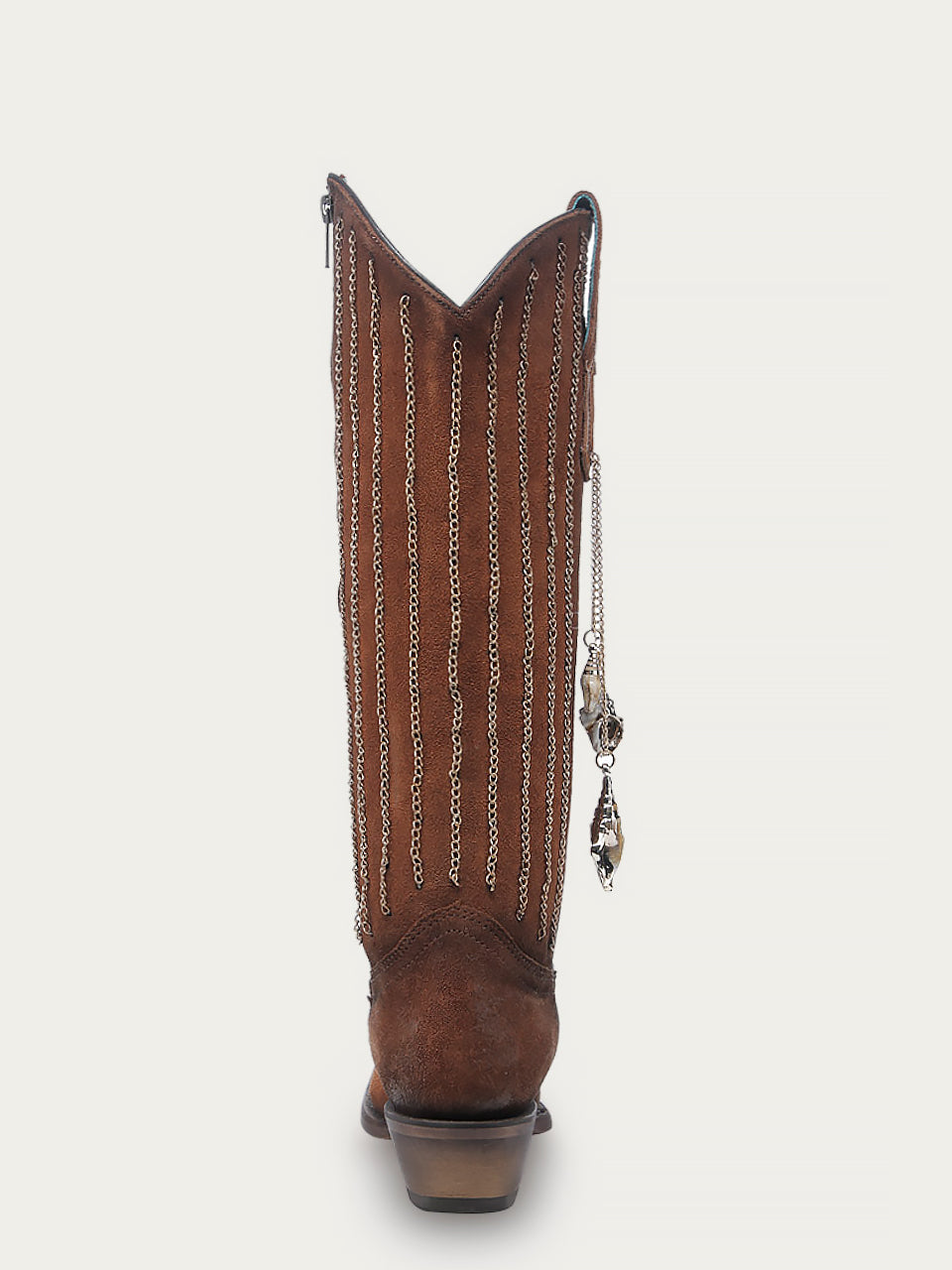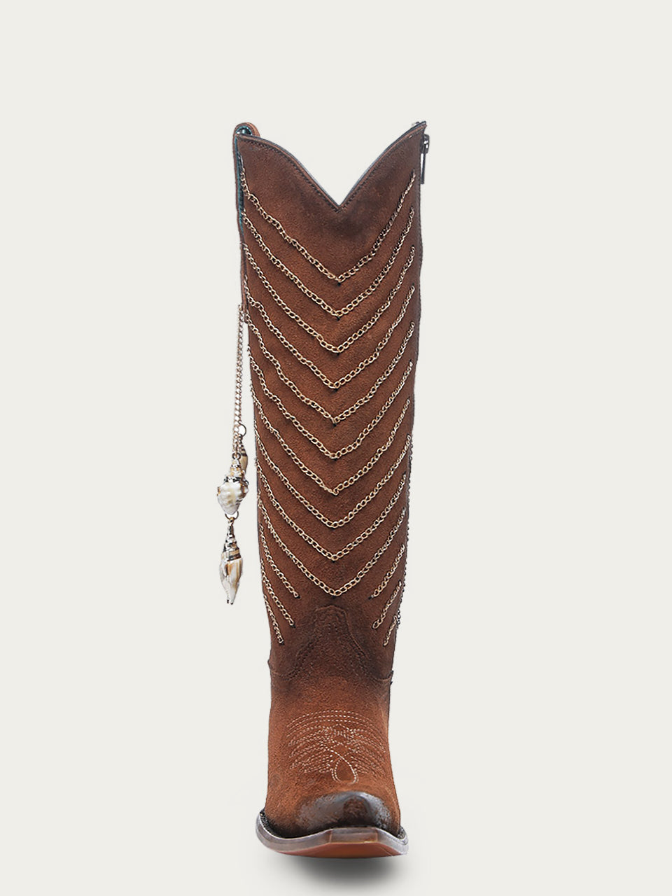 C4228 - WOMEN'S EMBROIDERY AND DELICATE CHAIN DETAILS WITH SHELL HANGING TALL TOP BROWN SNIP TOE COWBOY BOOT