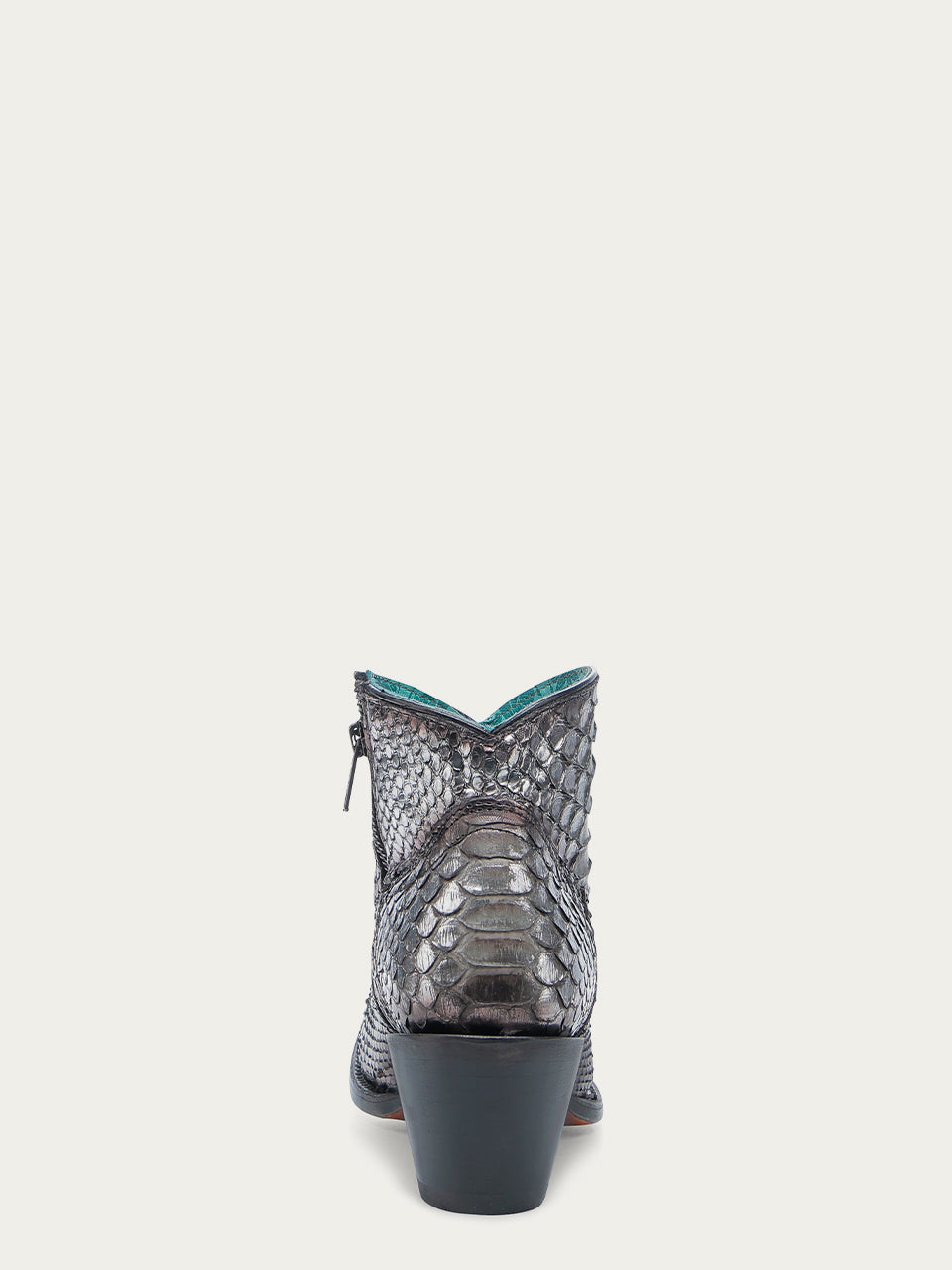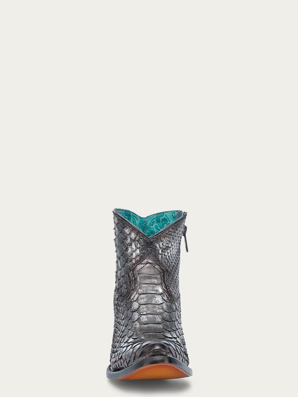A4721 - WOMEN'S GENUINE BLACK SILVER FULL PYTHON J TOE BOOTIE WITH ZIPPER