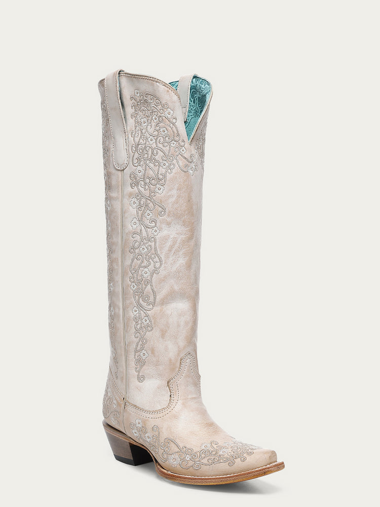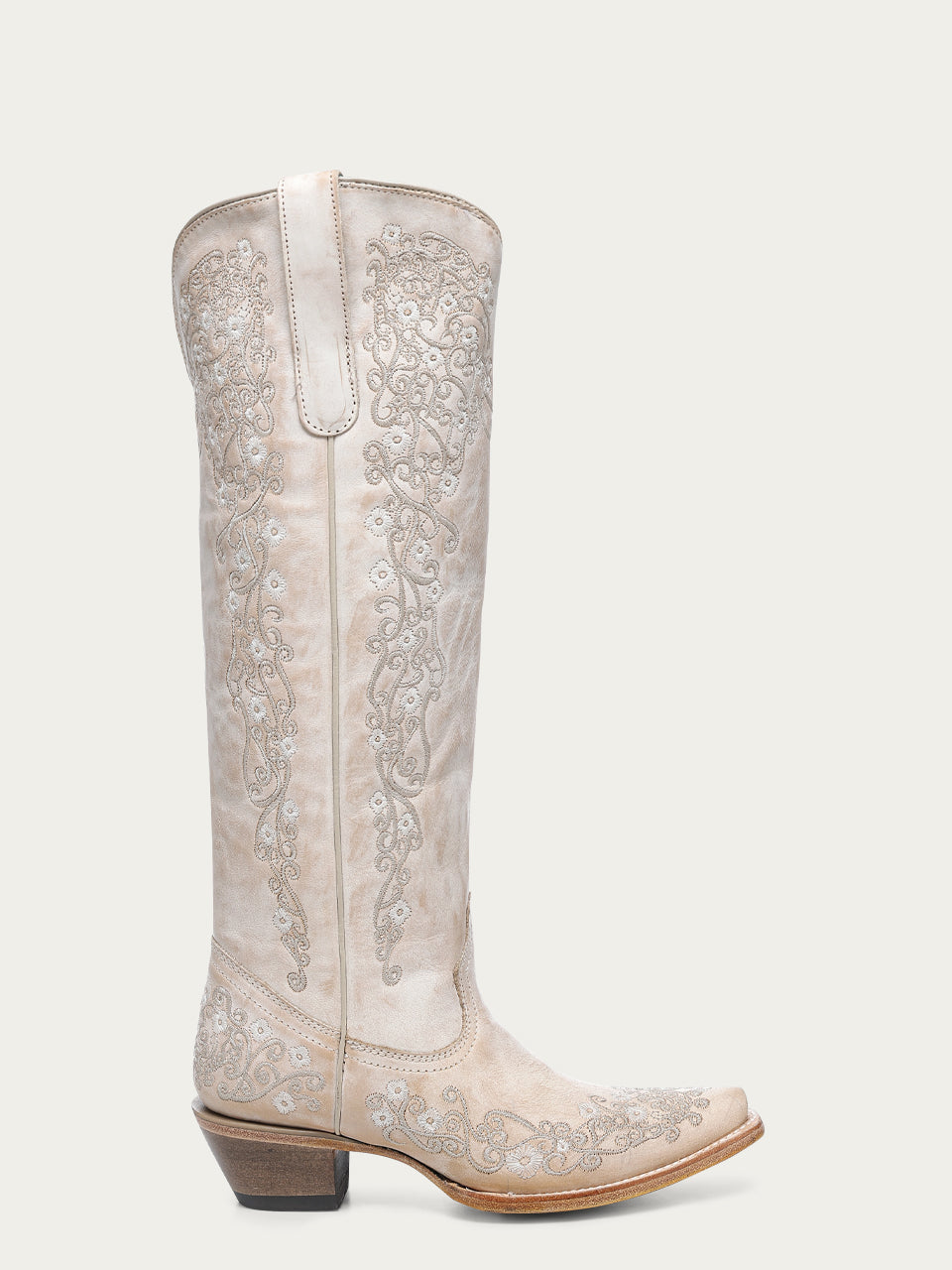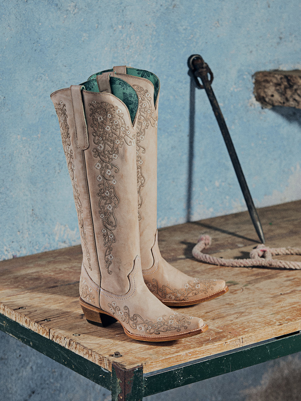 A4992 - WOMEN'S FLORAL EMBROIDERY SAND SNIP TOE TALL TOP COWBOY BOOT
