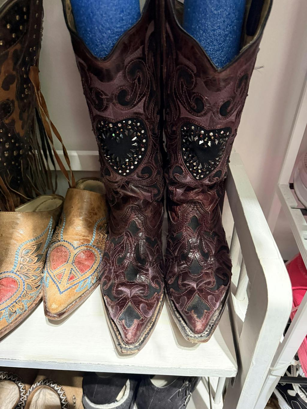 Boot creams come in many different colors as well as neutral for hard-to-match colors and may contain conditioning agents as well. Apply with a soft cloth or your fingers, using thin layers and multiple applications allowing the boots to absorb the boot cream. This provides a fresh new look and prevents the leather from drying out. You may also want to use boot cream around the edges of the sole and heel to restore worn or scuffed areas. Boot cream or polish is not recommended for scaled boots such as rattlesnake or python.