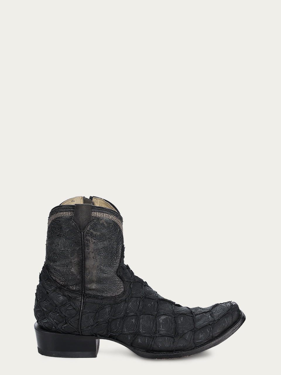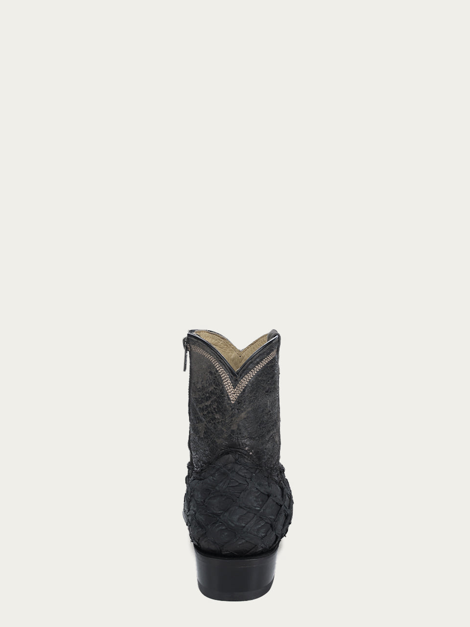 A4659 - MEN'S EMBROIDERY BLACK FISH PIRARUCU NARROW SQUARE TOE SHORT COWBOY BOOT