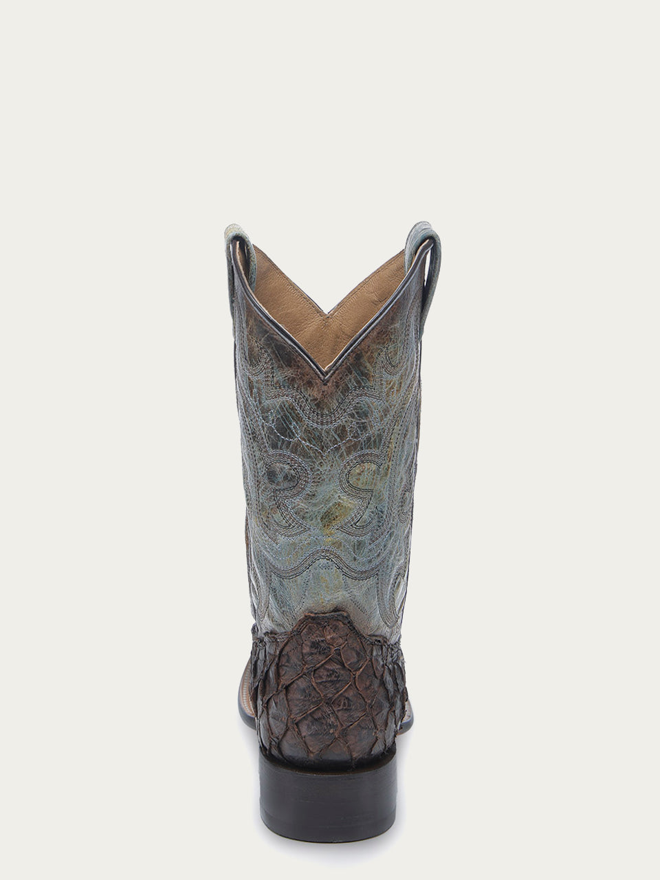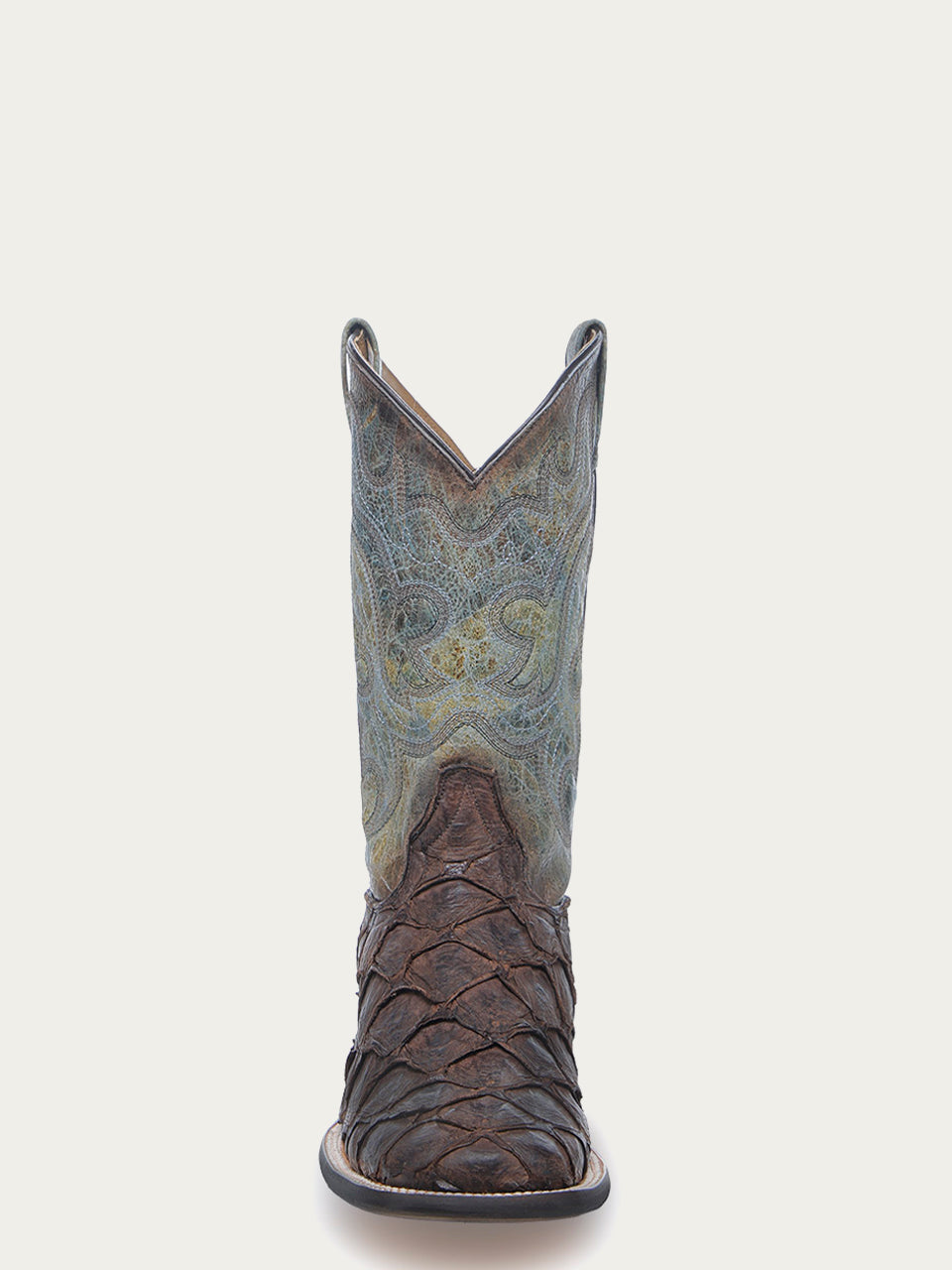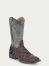 B5023 - MEN'S TOBACCO FISH PIRARUCU FADED TURQUOISE WIDE SQUARE TOE COWBOY BOOT