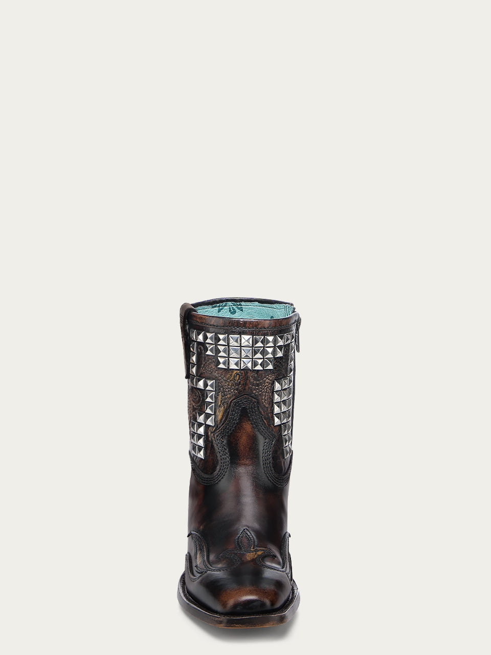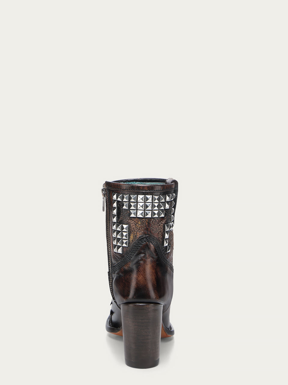 A4828 - WOMEN'S BLACKED HONEY OVERLAY EMBROIDERY AND STUDS BLACK ANKLE NARROW SQUARE TOE COWBOY BOOT
