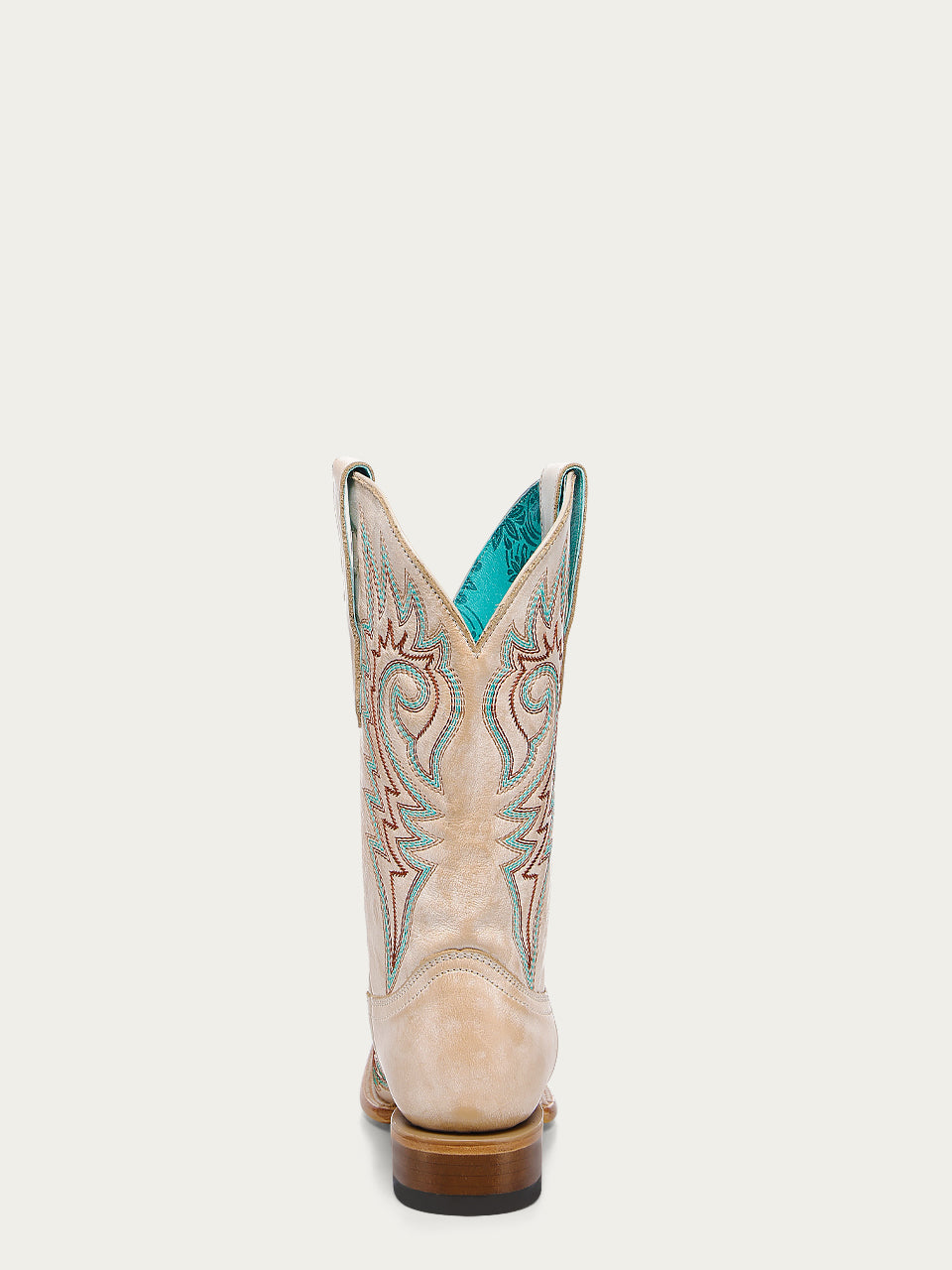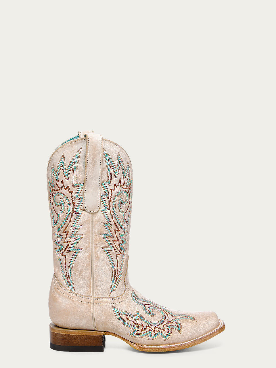 Z5444 - WOMEN'S BLUE AND RED EMBROIDERY BONE SQUARE TOE COWBOY BOOT