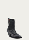 C4220 - WOMEN'S EMBOIDERY, OVERLAY AND STUDS BLACK ELASTIC TEXTILE SNIP TOE COWBOY BOOT