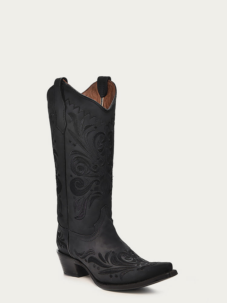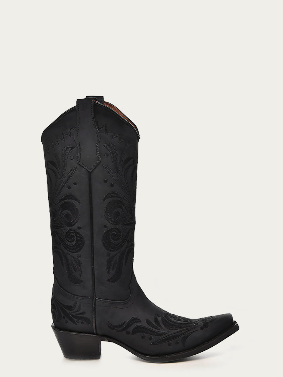 L5433 - WOMEN’S EMBROIDERY BLACK SNIP TOE COWBOY BOOT