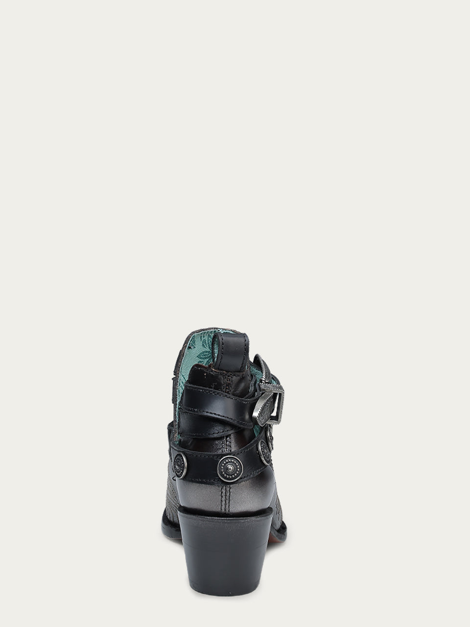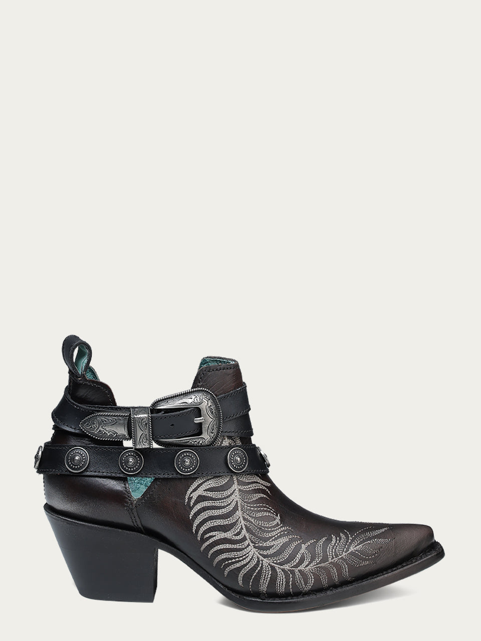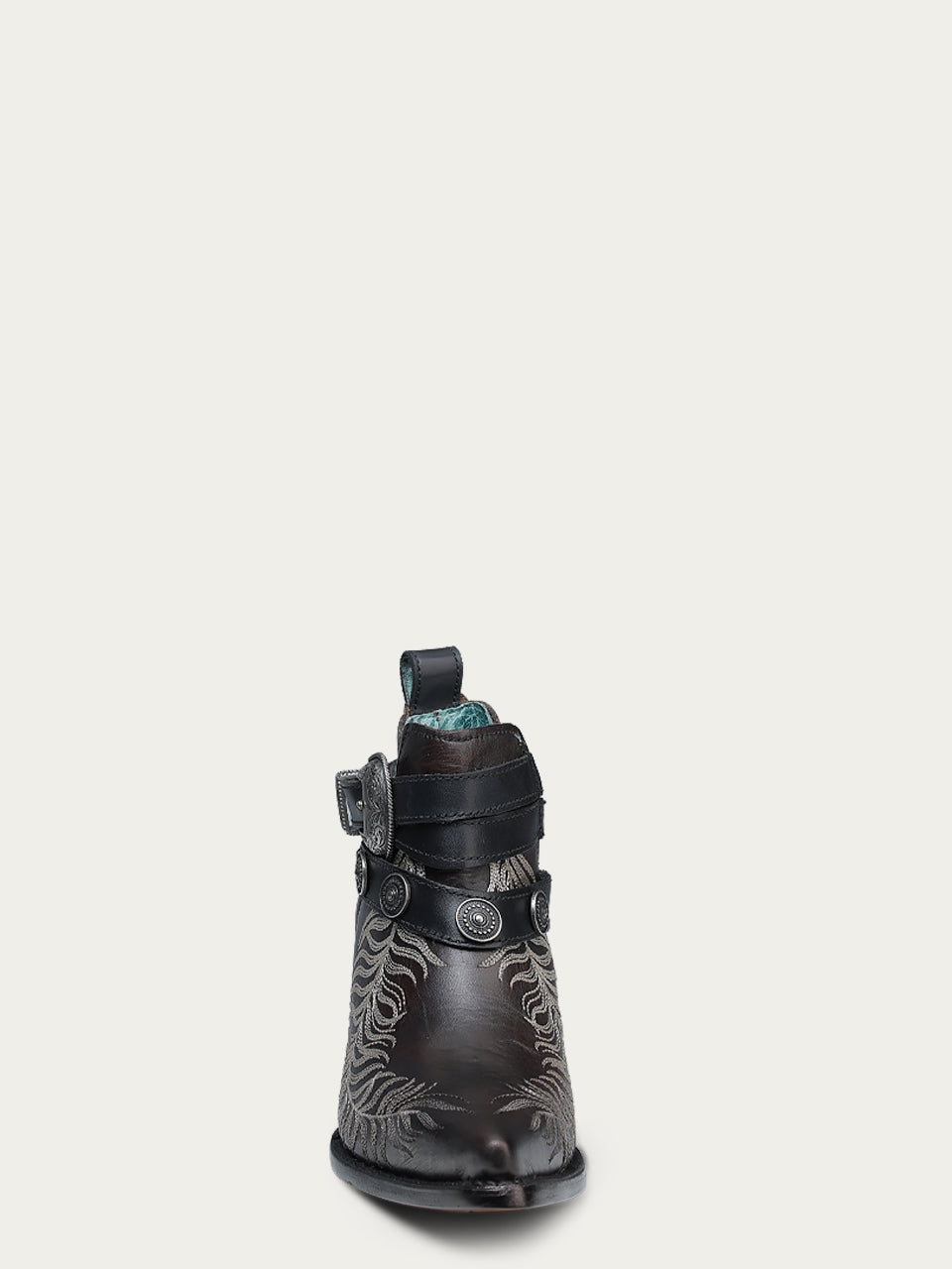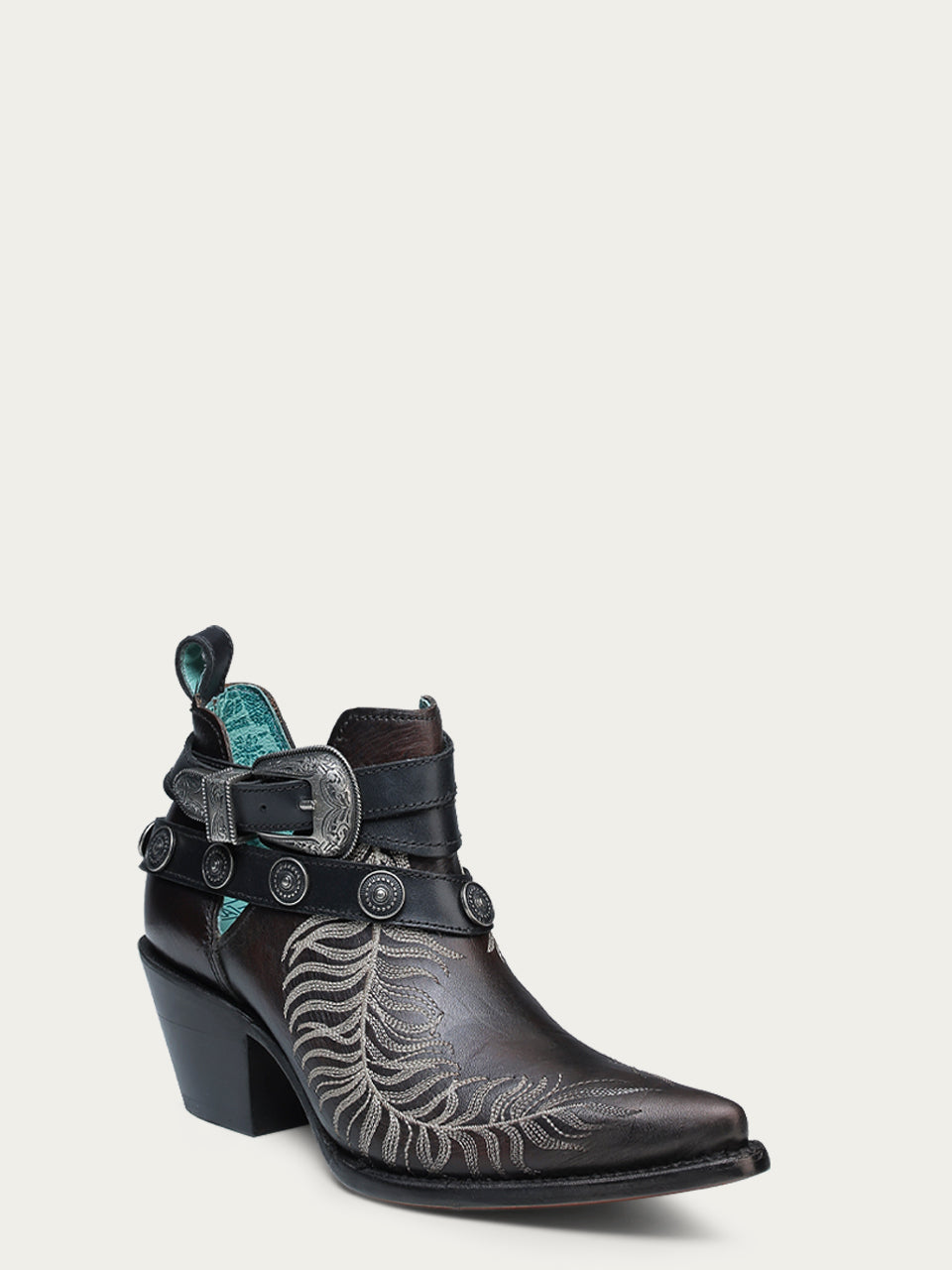 C4211 - WOMEN'S EMBROIDERY, CONCHOS AND HARNESS ANKLE CHOCOLATE POINTED TOE COWBOY BOOT