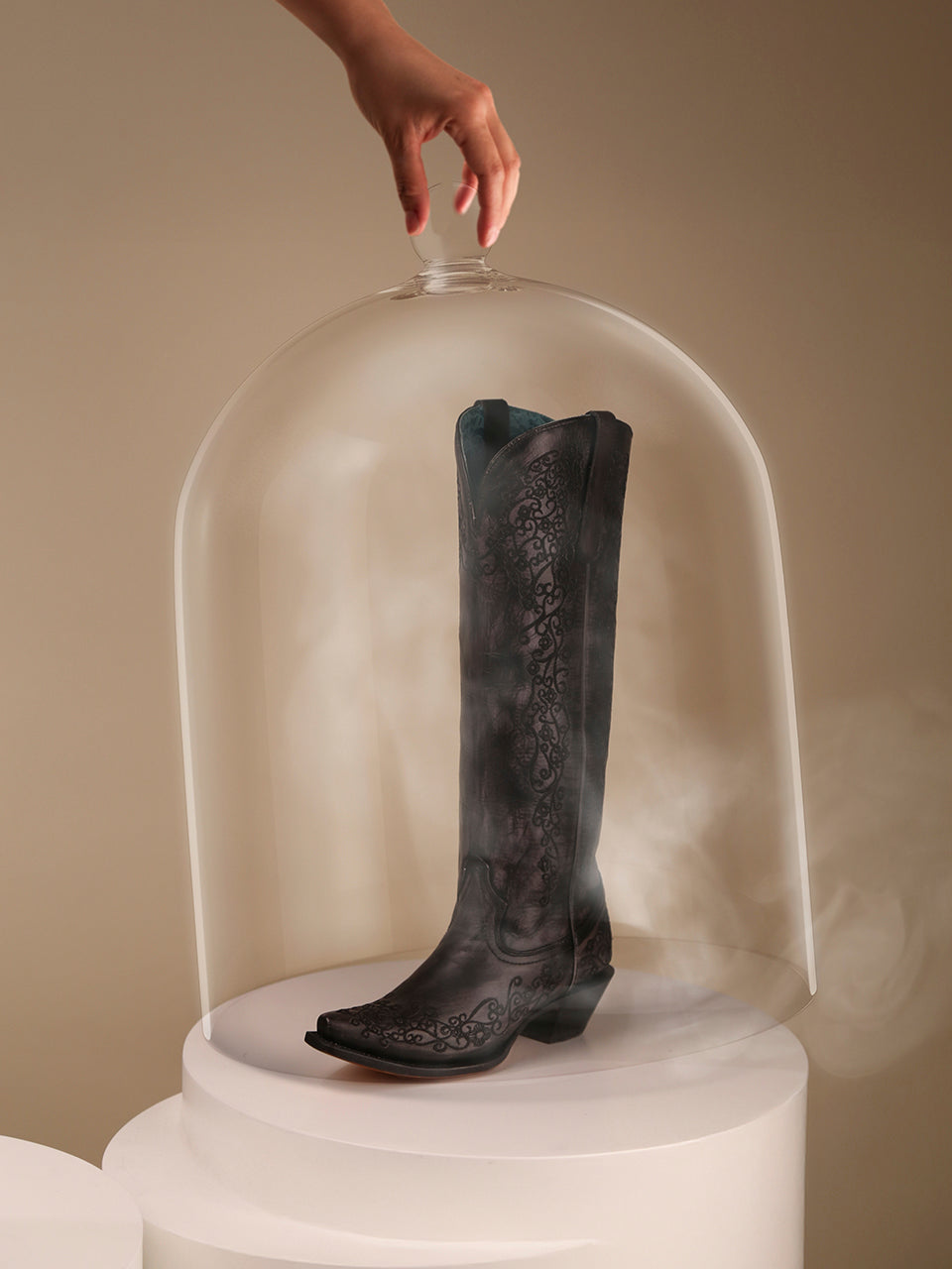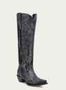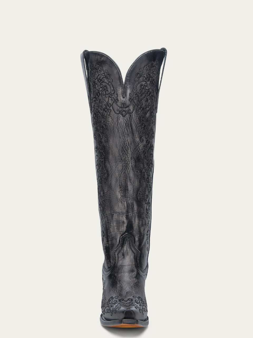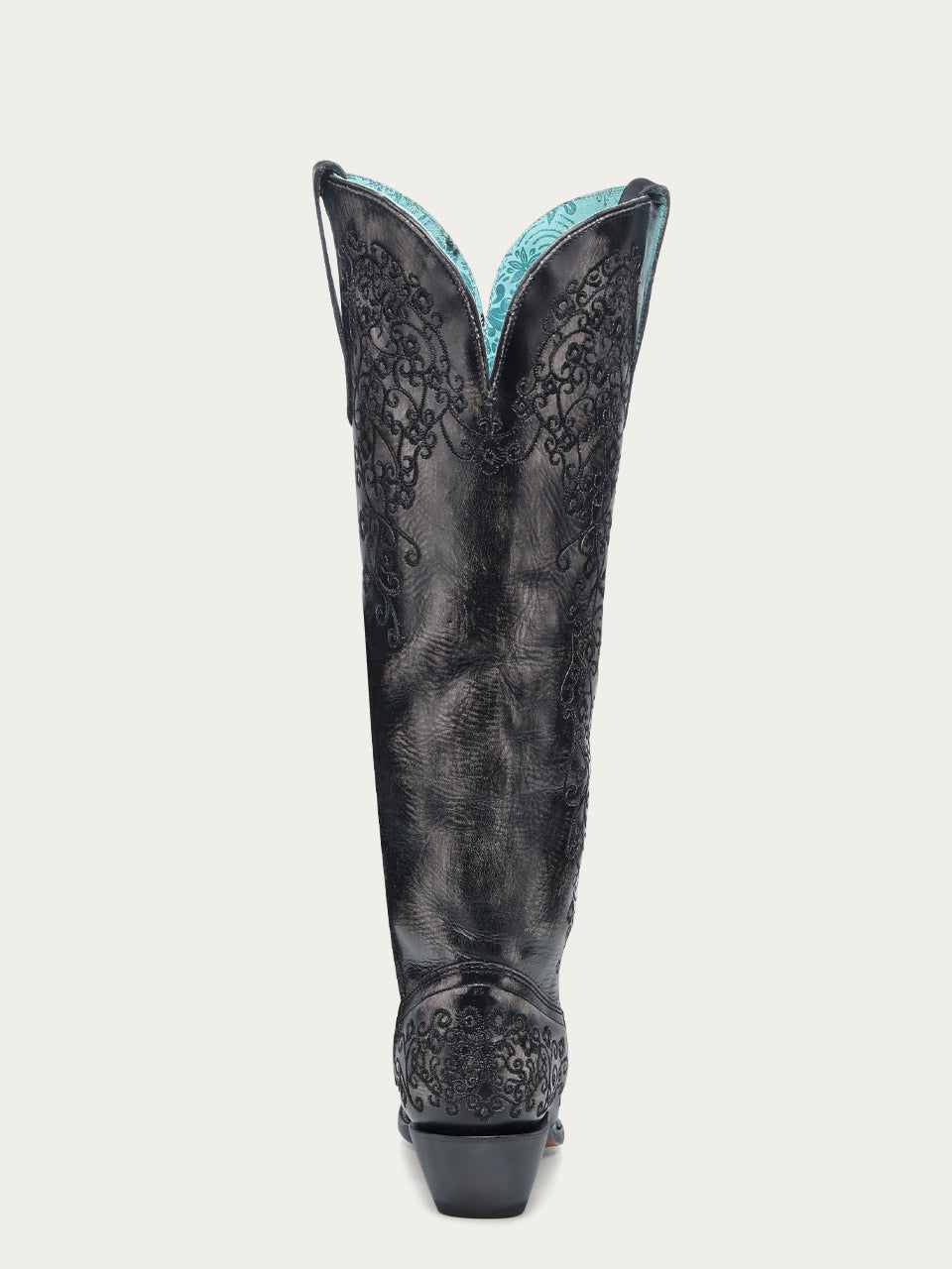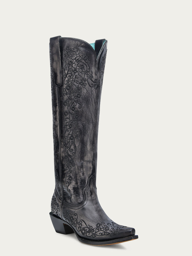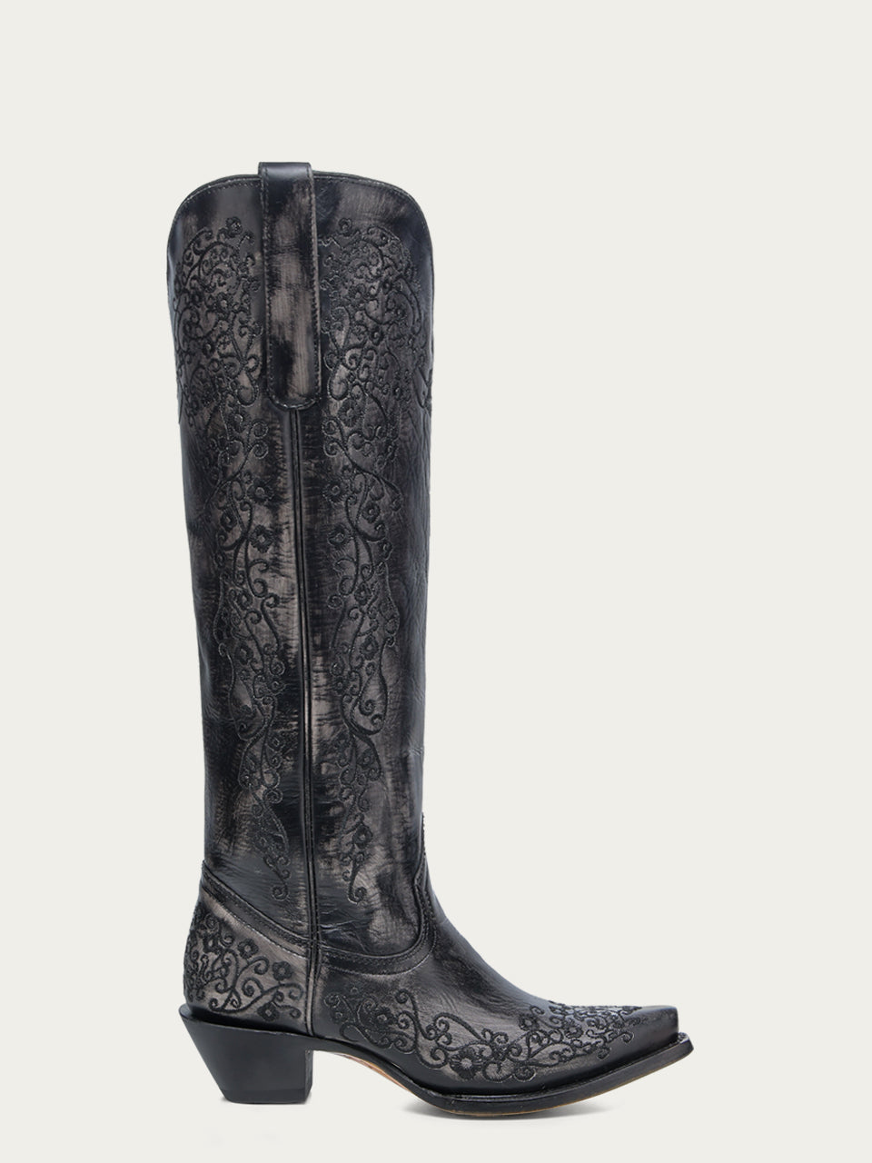 A4788 - WOMEN'S FLORAL EMBROIDERY BLACK SNIP TOE TALL TOP COWBOY BOOT