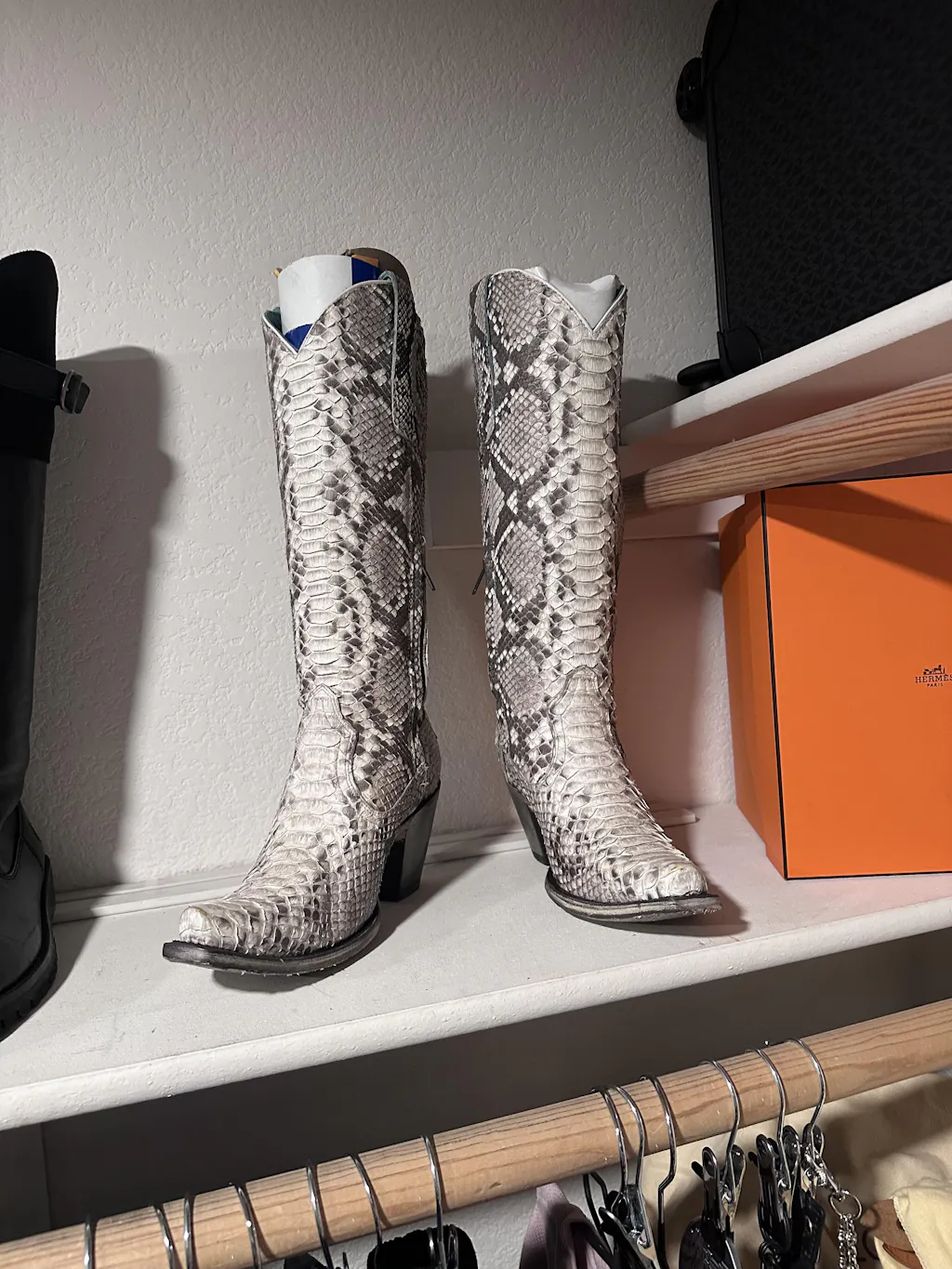 A3789 - WOMEN'S GENUINE FULL PYTHON TALL TOP SNIP TOE COWBOY BOOT