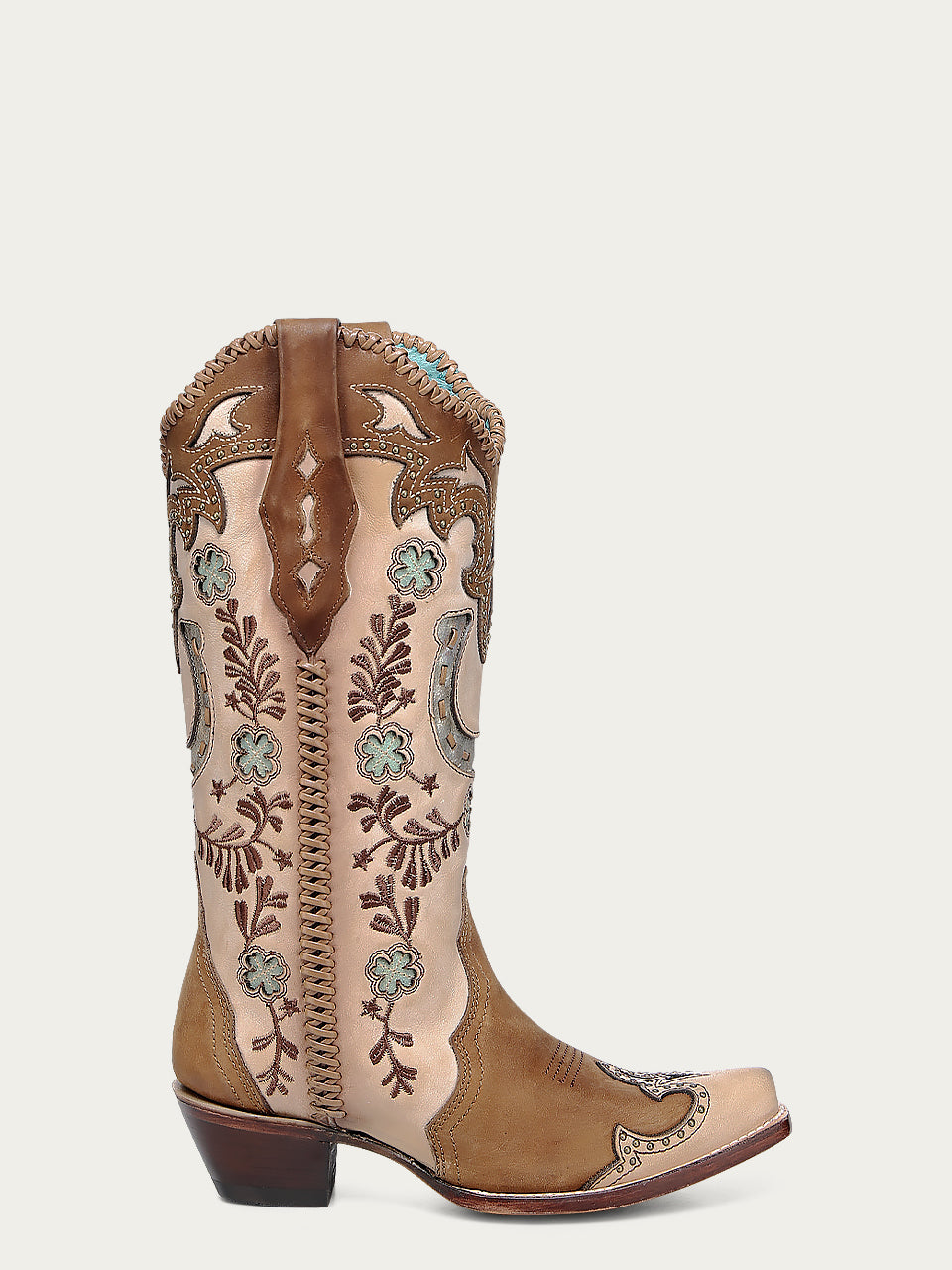 WOMENS HONEY HORSESHOE OVERLAY EMBROIDERY STUDS HANDWOVEN SNIP TOE COWBOY BOOT-A4863-C WOMENS HONEY HORSESHOE OVERLAY EMBROIDERY STUDS HANDWOVEN SNIP TOE COWBOY BOOT-A4863-C