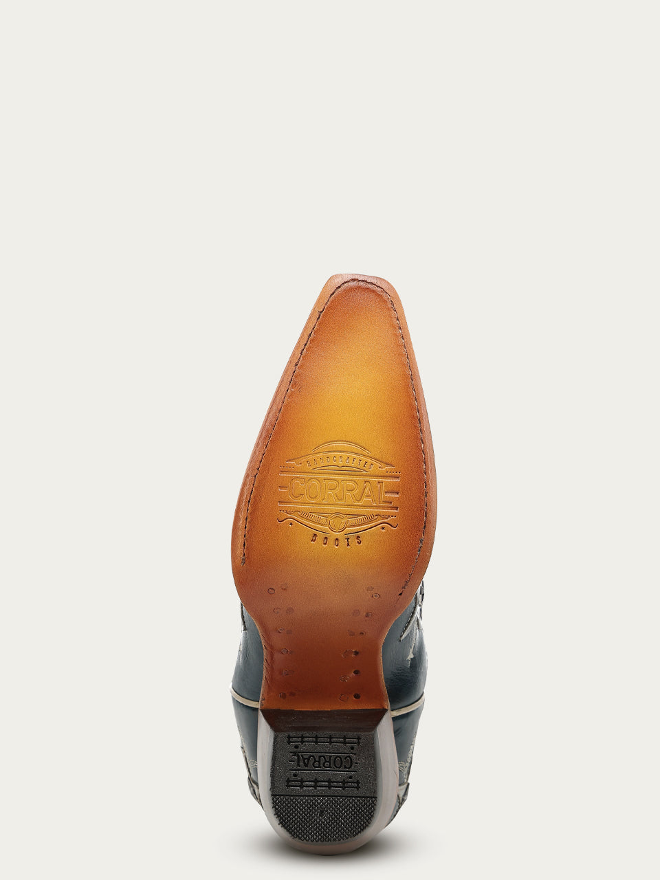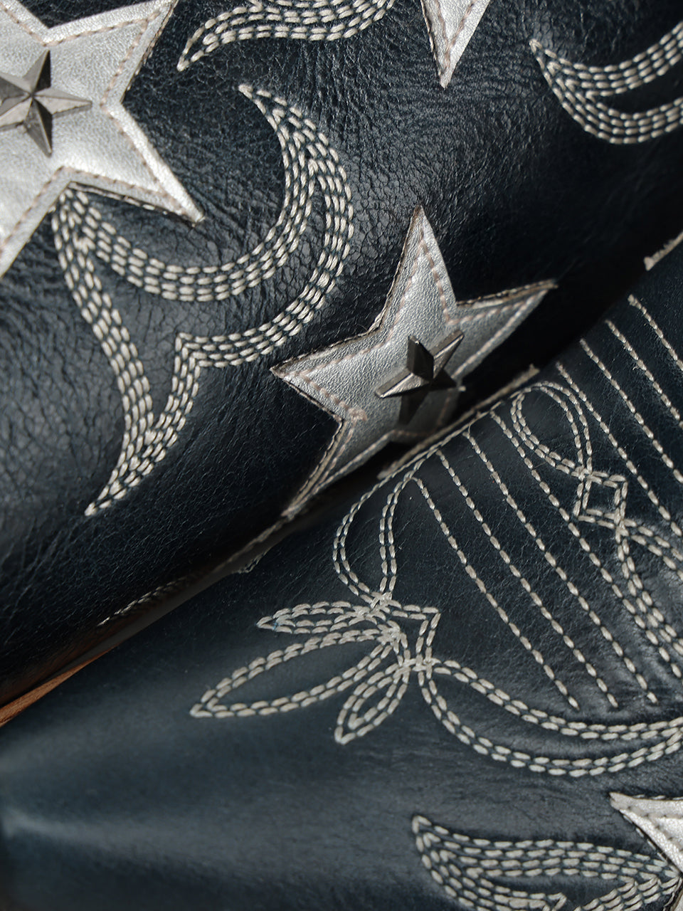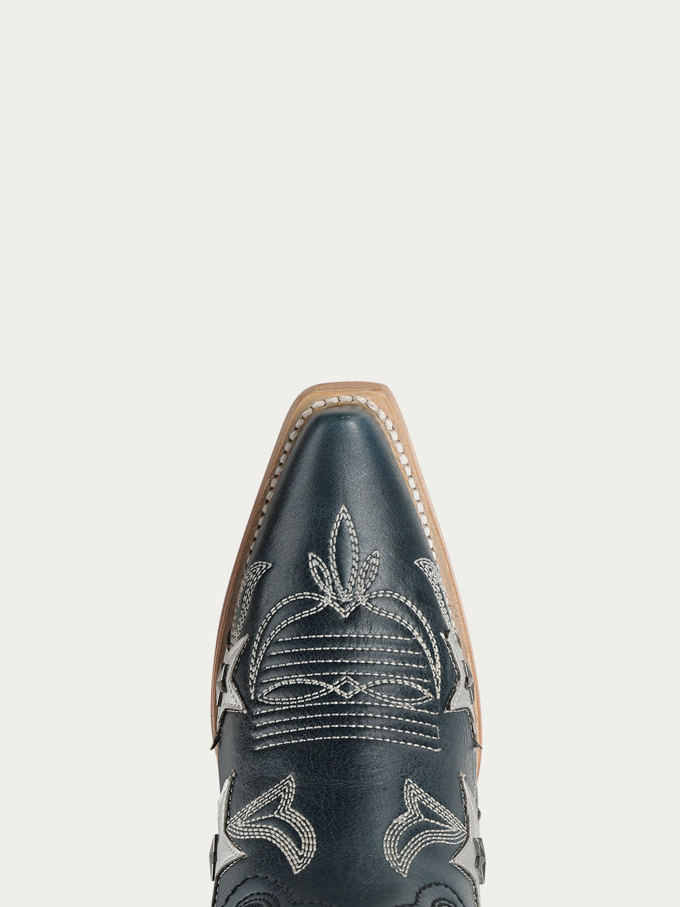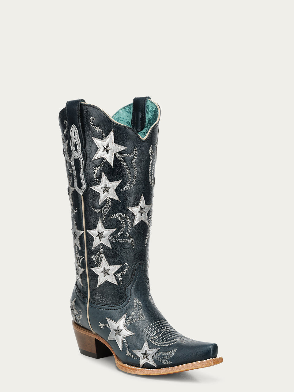 Z5541 - WOMEN'S NAVY BLUE EMBROIDERY STARS OVERLAY AND STUDS SNIP TOE COWBOY BOOT