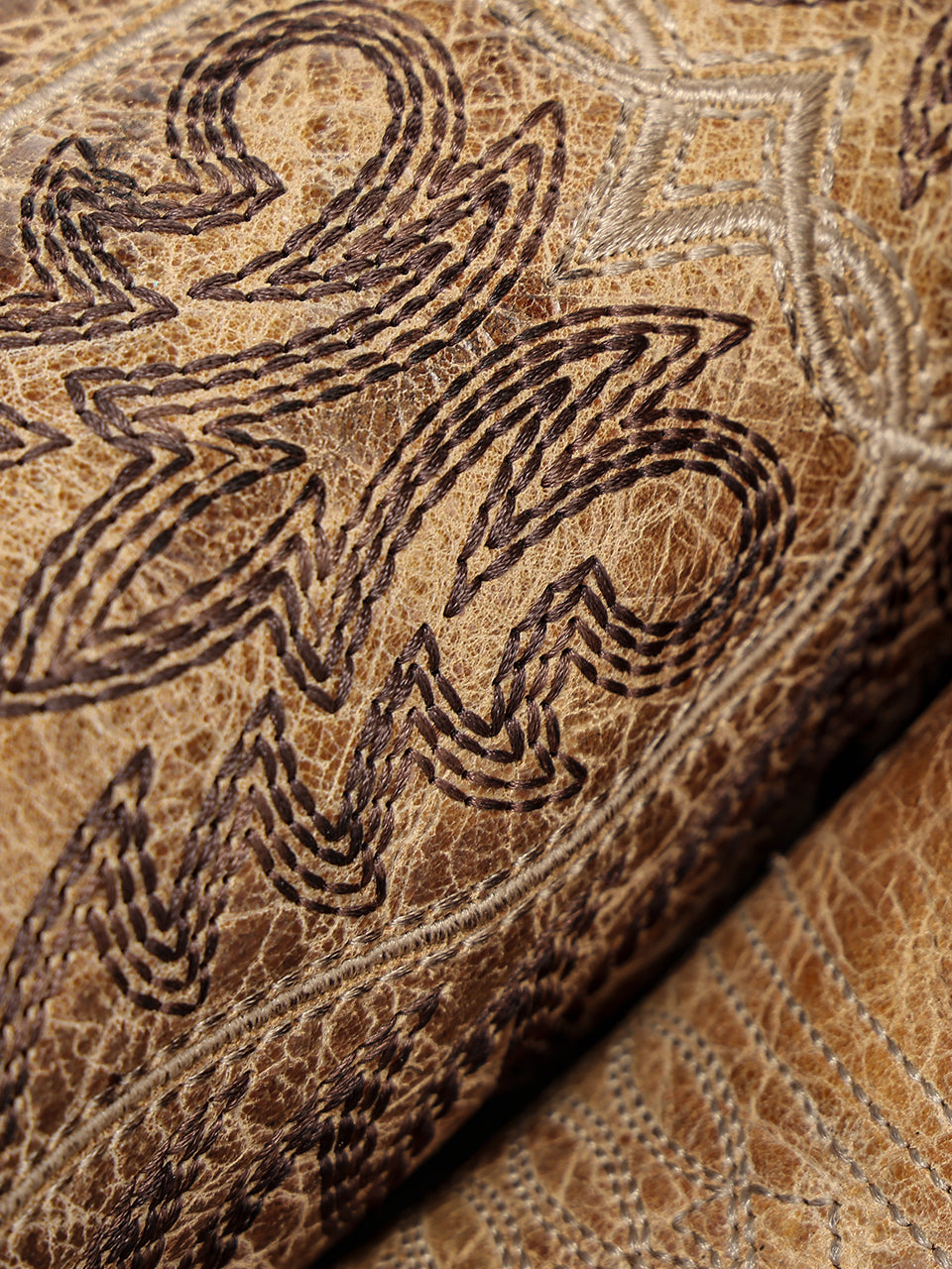At the end of the day, wipe off any loose dust, dirt, or foreign debris. It is abrasive to all types of leather, failure to properly clean the soles, heels, or stitching will eventually cause the leather to weaken causing splits or cracks to occur ruining the overall appearance of the boot. Use a very soft brush or a damp cloth to remove dust, dirt, and debris from crevices, stitching, heels, shaft, vamp, and soles. You may use a slightly damp sponge to remove heavy mud on caked areas where mud has dried. Do not use solvents, gasoline, household, or industrial cleaners to try and remove stains. Do not soak or wash the boots in heavy running water. Remove any excess water as soon as possible with a soft dry cloth and allow to air dry. Do not leave your boots in front of a fireplace, stove, oven, or direct sun, or use a hair dryer to dry. Not doing so could result in mold, discoloration, or premature deterioration of the leather or skin.