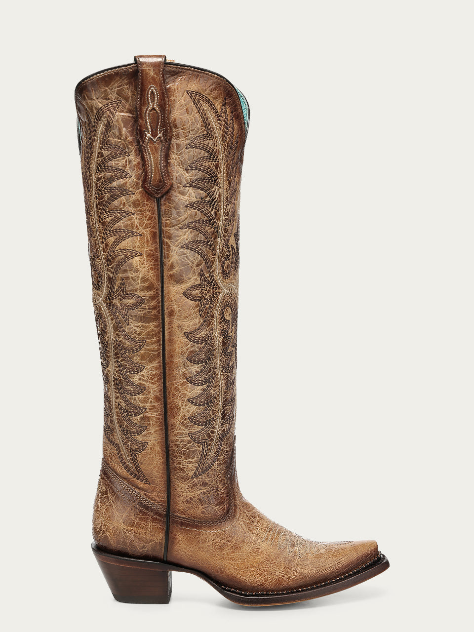 A5009 - WOMEN'S SAND EMBROIDERY WITH METALLIC BEADED WELT SNIP TOE TALL TOP COWBOY BOOT