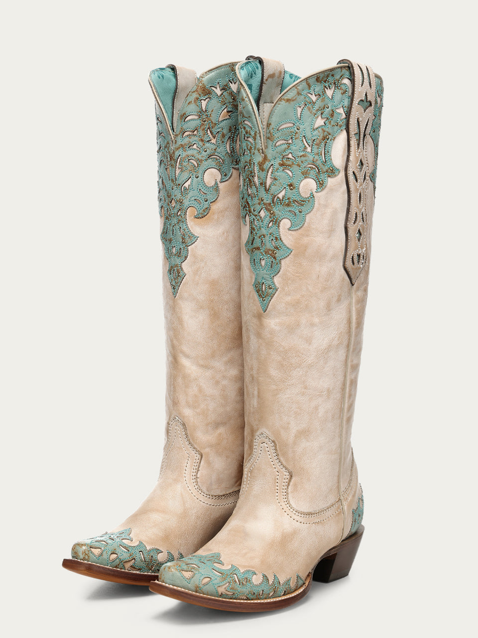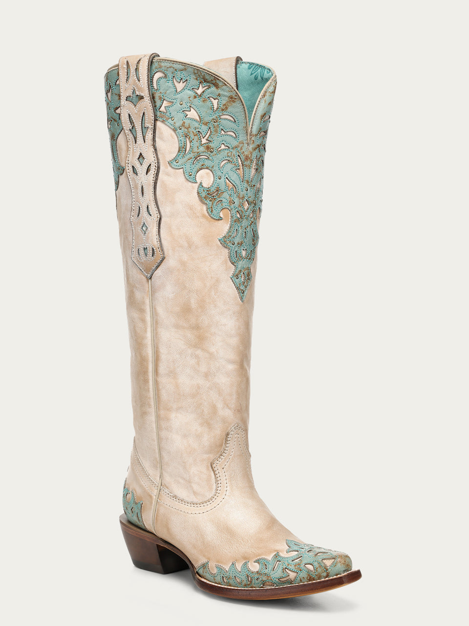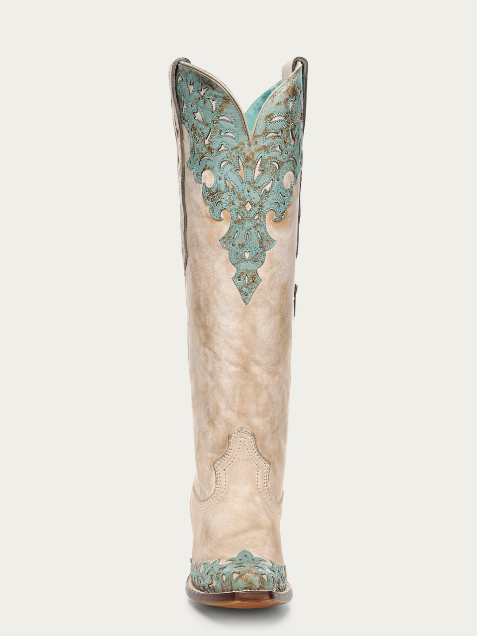 A5017 - WOMEN'S SAND OVERLAY EMBROIDERY AND STUDS TALL TOP SNIP TOE COWBOY BOOT