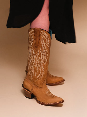 A4216 - WOMEN'S WHITE EMBROIDERY TAN SNIP TOE COWBOY BOOT